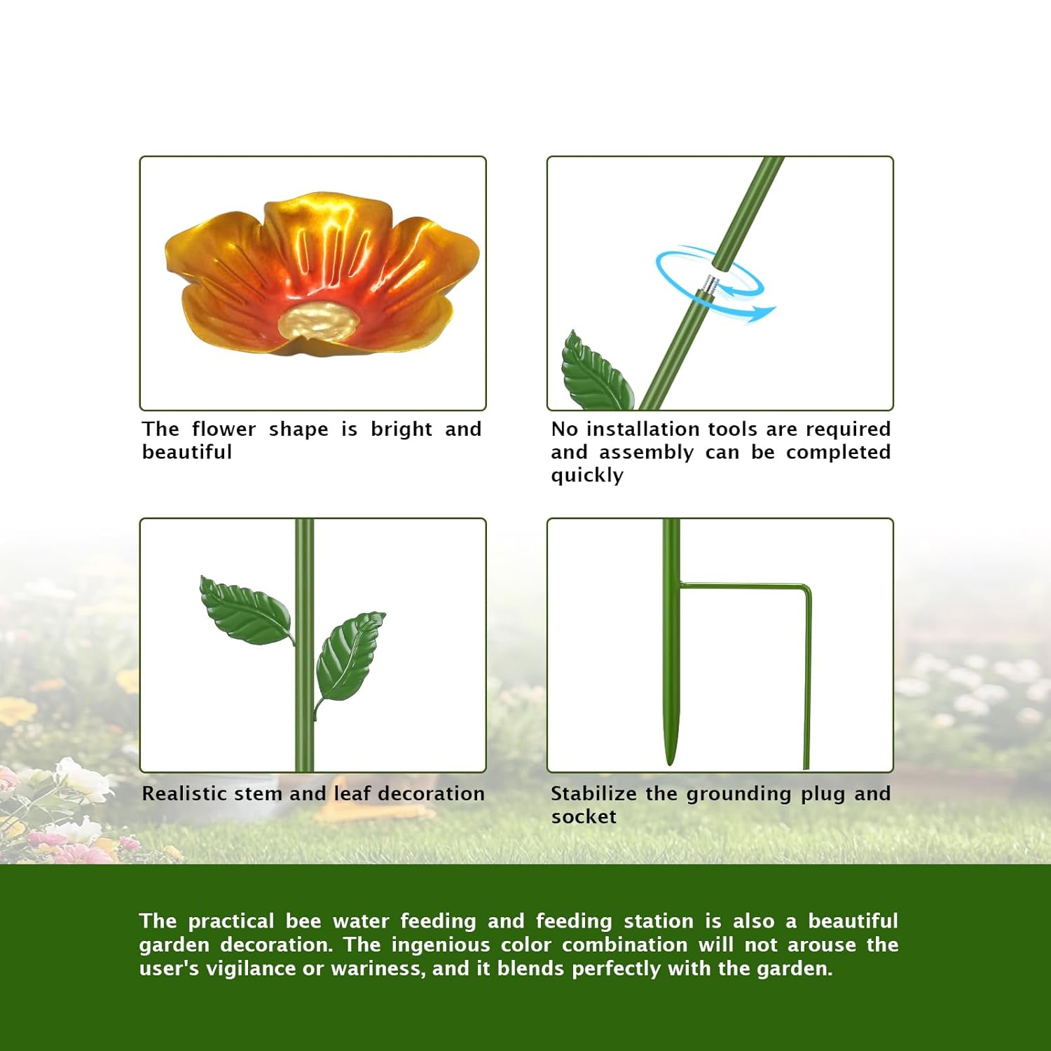 - 【Eye-Catching Floral Design】Adorn your garden with these vibrant, flower-shaped Bee Bath Feeder! The colorful petals create a stunning visual appeal while effectively attracting insects and butterflies. The lifelike green stem blends naturally into outdoor spaces.