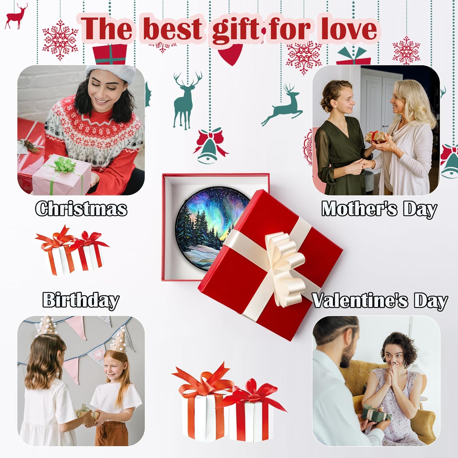 Stained Glass Window Hanging, Aurora Landscape Sun Catchers Glass Panel Green Trees Suncatcher Decor for Birthday for Women, Men, Wife, Aunt, and Mom 14.9x14.9 in