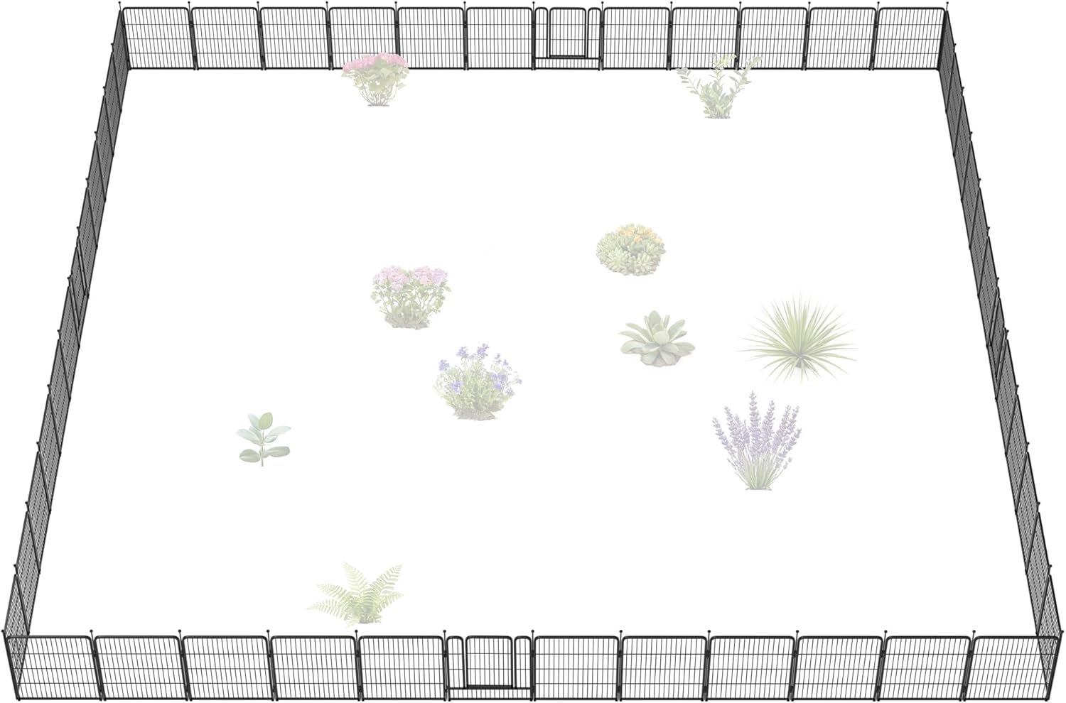 - Dimension: The height of each piece is 32 inch and the width is 2.28 ft, with a total of 44 panels and 4 pieces of doors. It's 109.4 ft long to connect all of them. The stake is 2.9 ft long, with a total of 50 pieces.