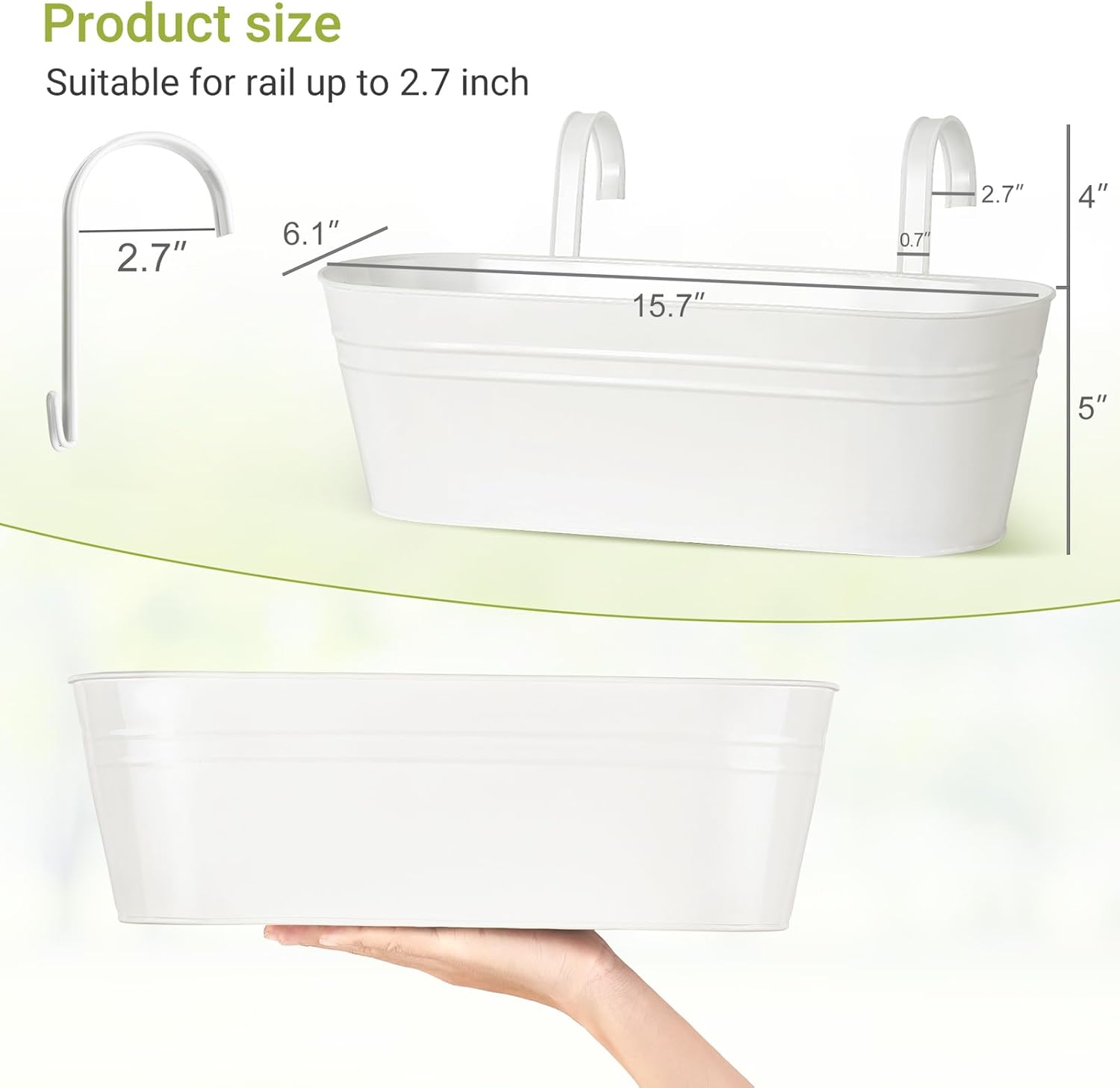 - Large Size: Planter:15.74" x 6.10" x 5". Hook is 4" x 2.7"x 0.7"(Suitable for rail up to 2.7 inch). Please check the size carefully before purchasing. Pay attention to:The hook is disassembled for transportation,you need to install the iron bucket yourself when it arrive