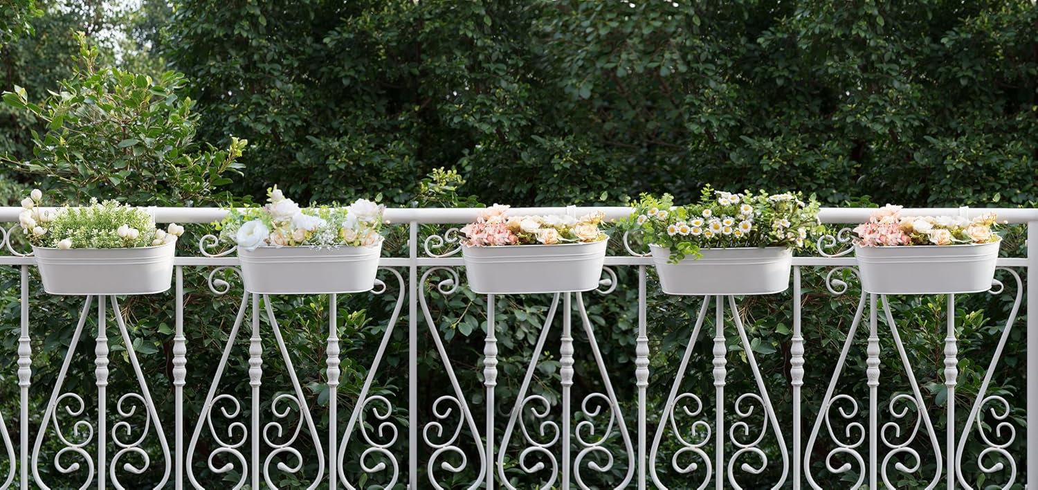 - Balcony Rail Planter: Rectangular outdoor planters was designed to maximize inside growing space allowing dirt and roots to grow strong and deep.This special design can be hung on the balcony, window, garden,railing, anywhere in the room,also can be used as desktop