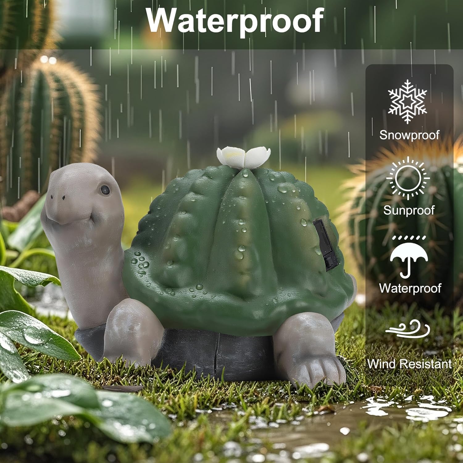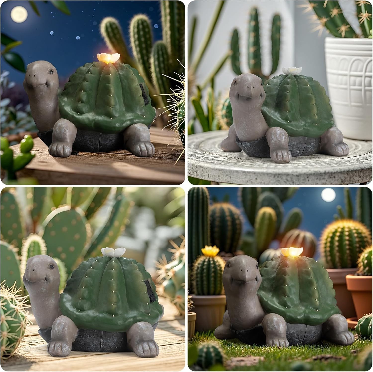 Solar Cactus Turtle Statue Garden Decor Light - Outdoor Decorative LED Flower, Suitable for Patio, Lawnand Garden Decorations, Gifts for Mom