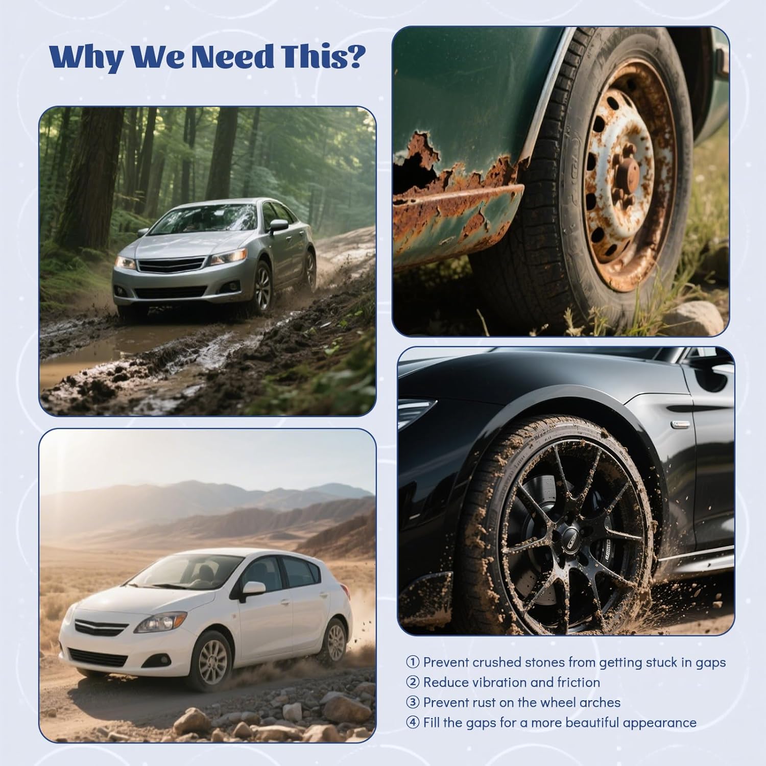 - 【Superior Protection】This durable rubber material not only acts as a protective barrier for your car and truck wheel arch wells against dirt, debris, and minor impacts but also helps prevent scratches and chips.The 5.5CM width is perfectly designed to fit most vehicle models, providing a snug and secure fit.