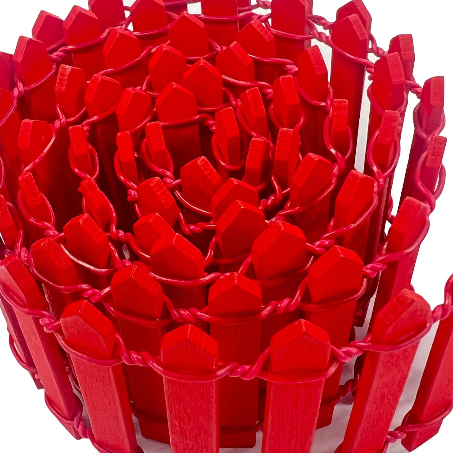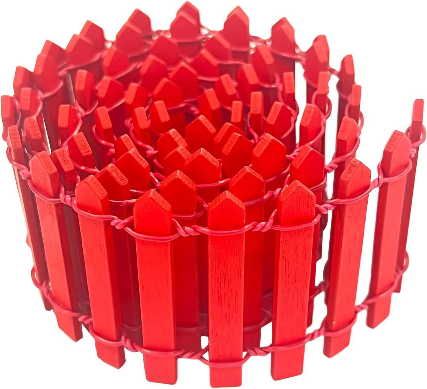 35 Inches Mini Fairy Garden Fence DIY Christmas Small Wood Decorative Picket Fence Micro Landscape Miniature Ornaments for Dollhouse, Crafts, Diorama Project, Plant Pot, Red