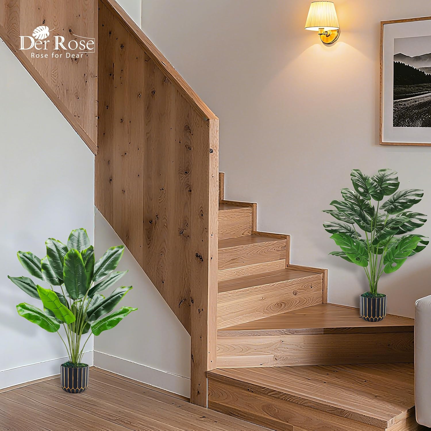 Der Rose 2 Pack 28" Tall Bird of Paradise Artificial Plants and Artificial Monstera Plants Tropical Fake Potted Banana Tree Faux Plants Indoor and Outdoor for Home Office Living Room Porch Decor