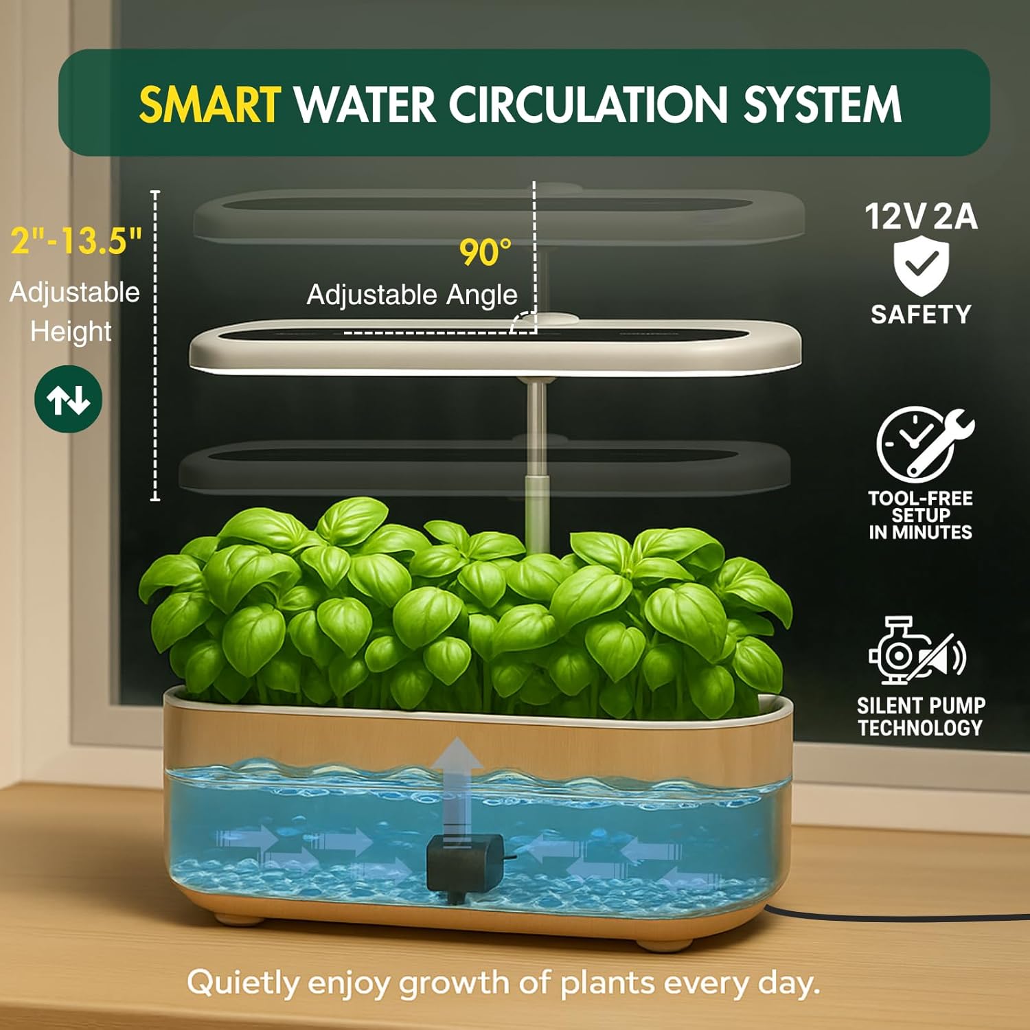 - 【High Efficiency Indoor Gardening】Kickstart your indoor herb garden with the aGratHav Hydroponic Growing System. Designed with 14 growing pods, a built-in water reservoir, circulation system, and an overhead LED grow light, it creates the perfect controlled environment for faster, healthier plant growth—no soil, no mess.