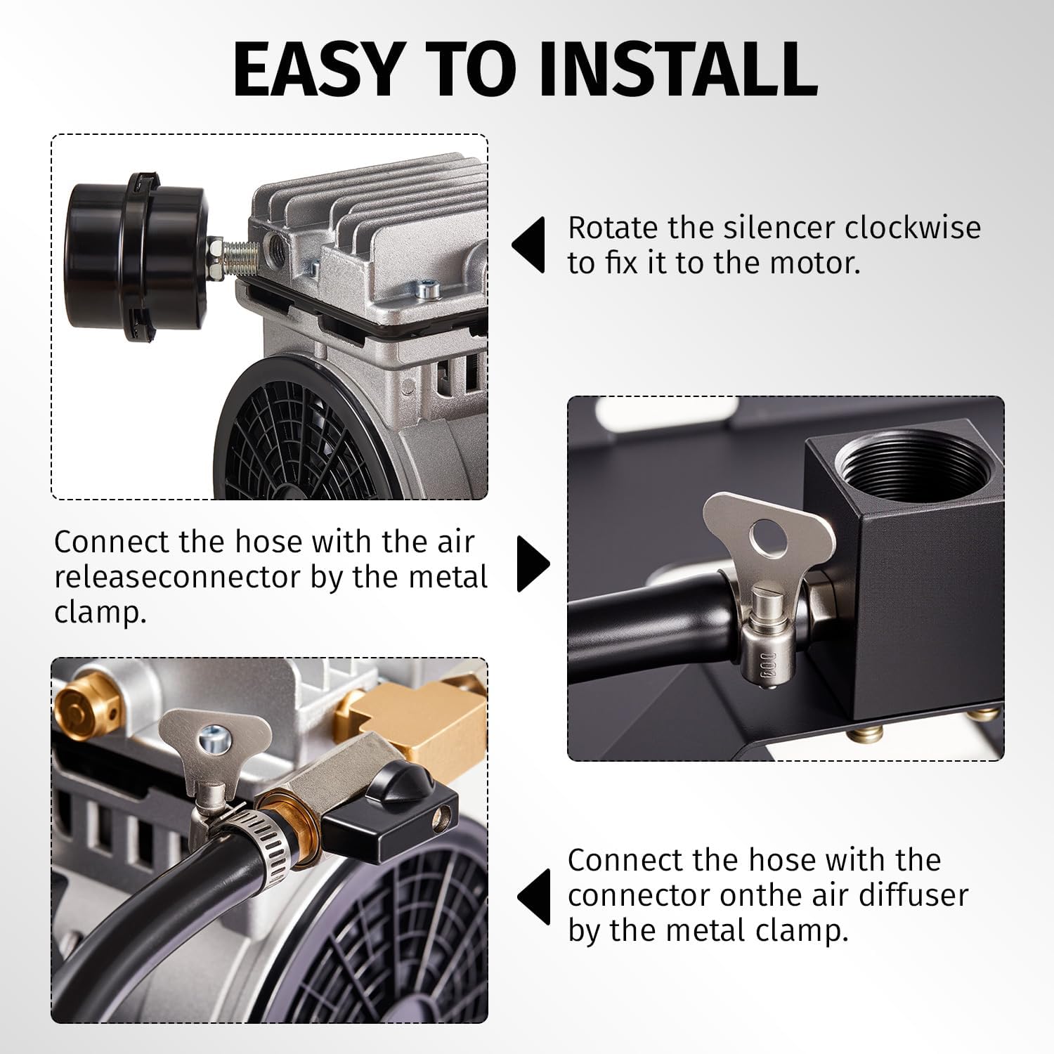 - 2. Dual rocking piston design with cooling fins ensures quiet, efficient performance while maintaining consistent airflow.