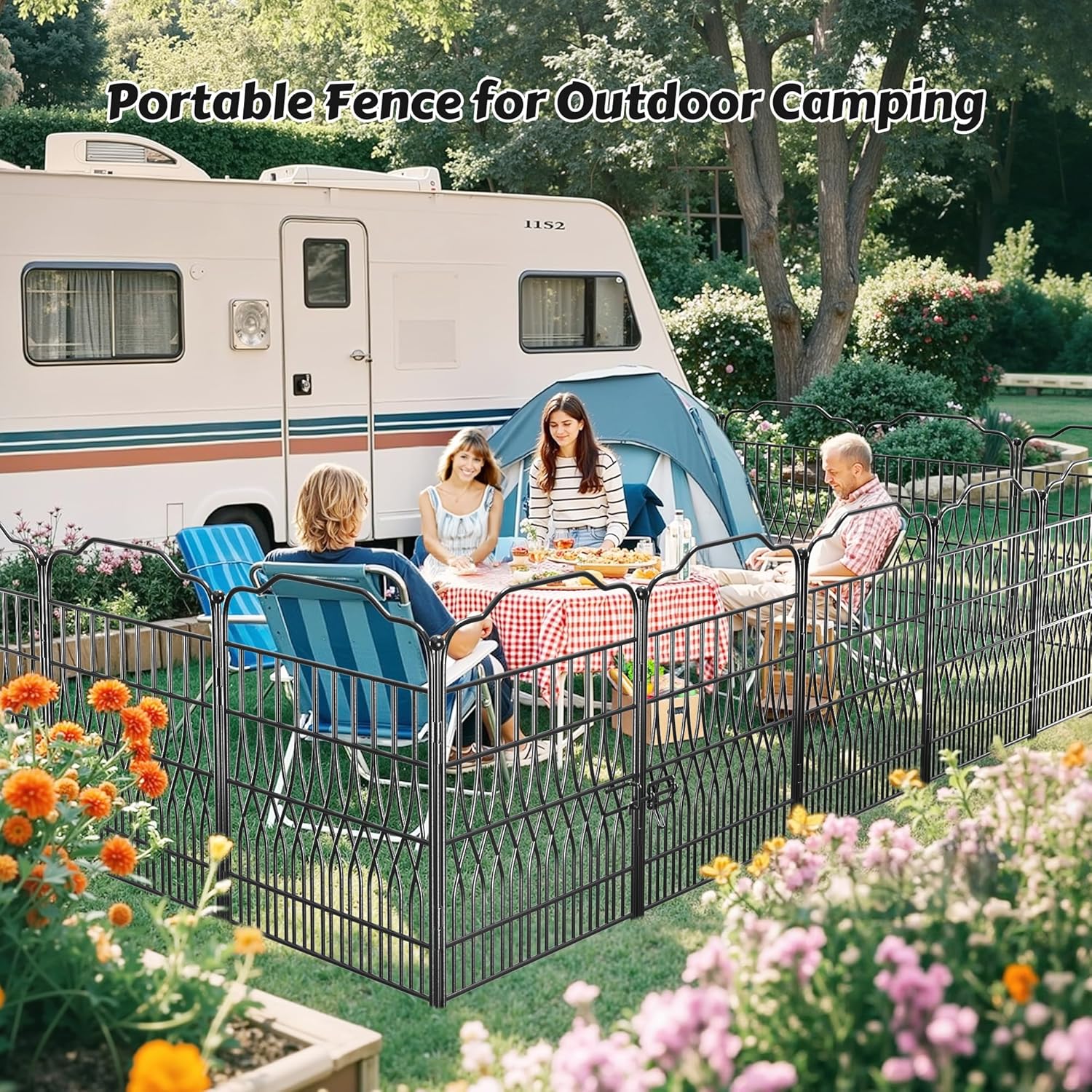 - 【Multi-purpose Decorative Fence】 The classic black garden fence, featuring an arc-shaped design, combines fashion with practicality and can be adapted to various garden or courtyard styles. The fence can be assembled into any shape according to your needs to separate part of garden and serve as physical barrier between patio and pool. The temporary fence also can be used for outdoor camping with dogs