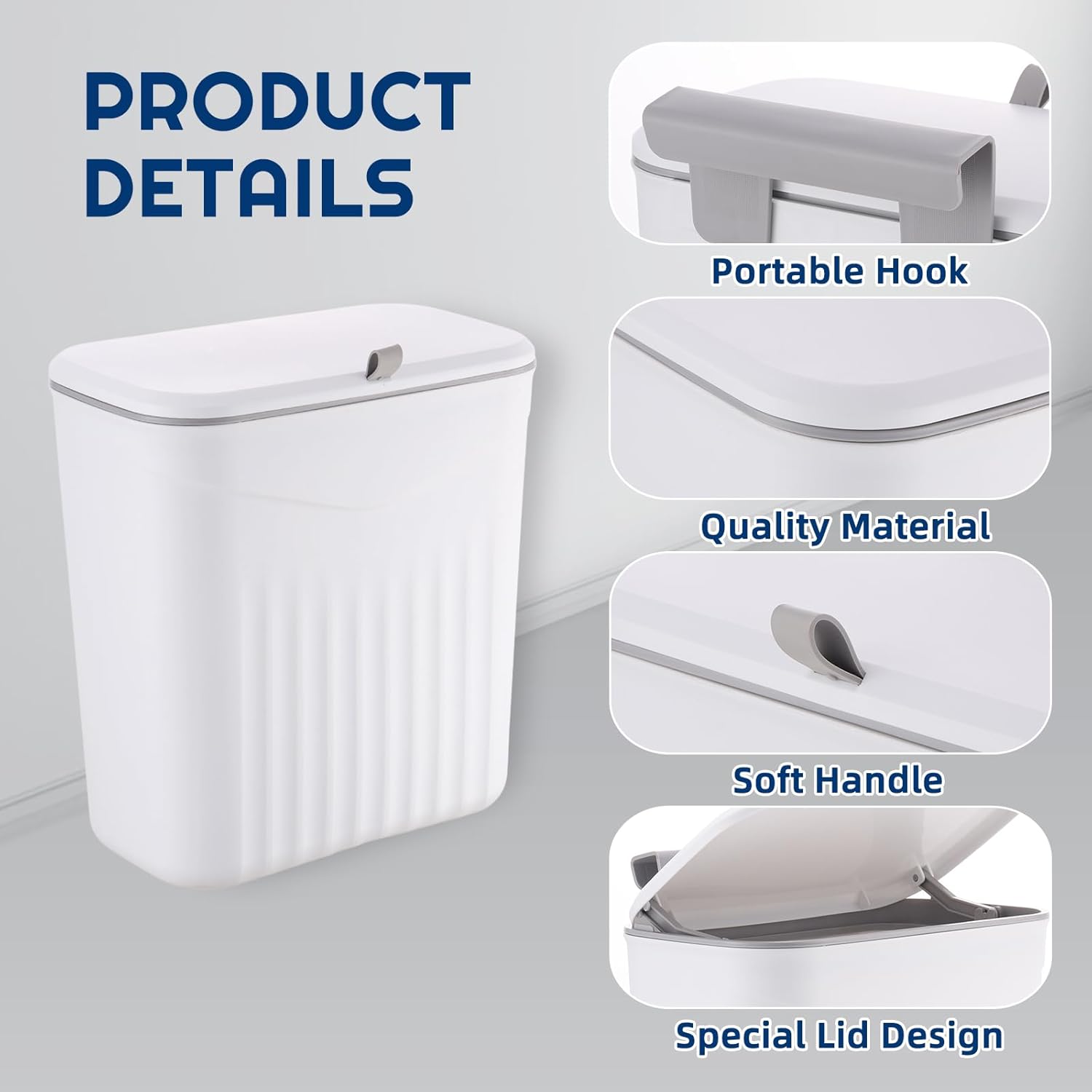 3 Pack Hanging Trash Can with Lid, Kitchen Compost Bin for Counter Top or Under Sink, Waste Basket Wall Mounted Garbage Can for Cupboard/Bathroom/Bedroom/Office/Camping (White)