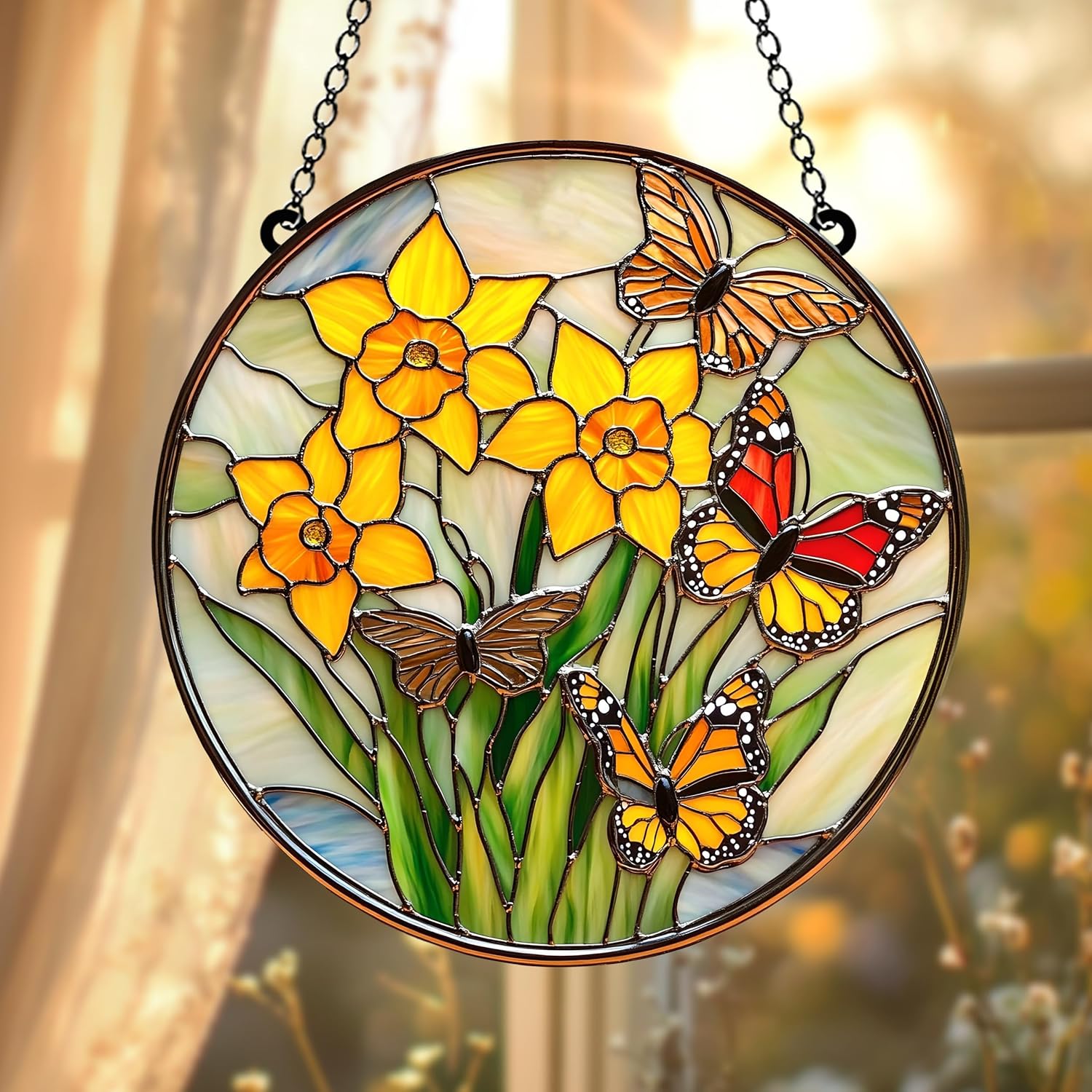 Daffodil Birth Flower Acrylic Suncatcher Floral Window Hanging Birthday Gift for Mom
