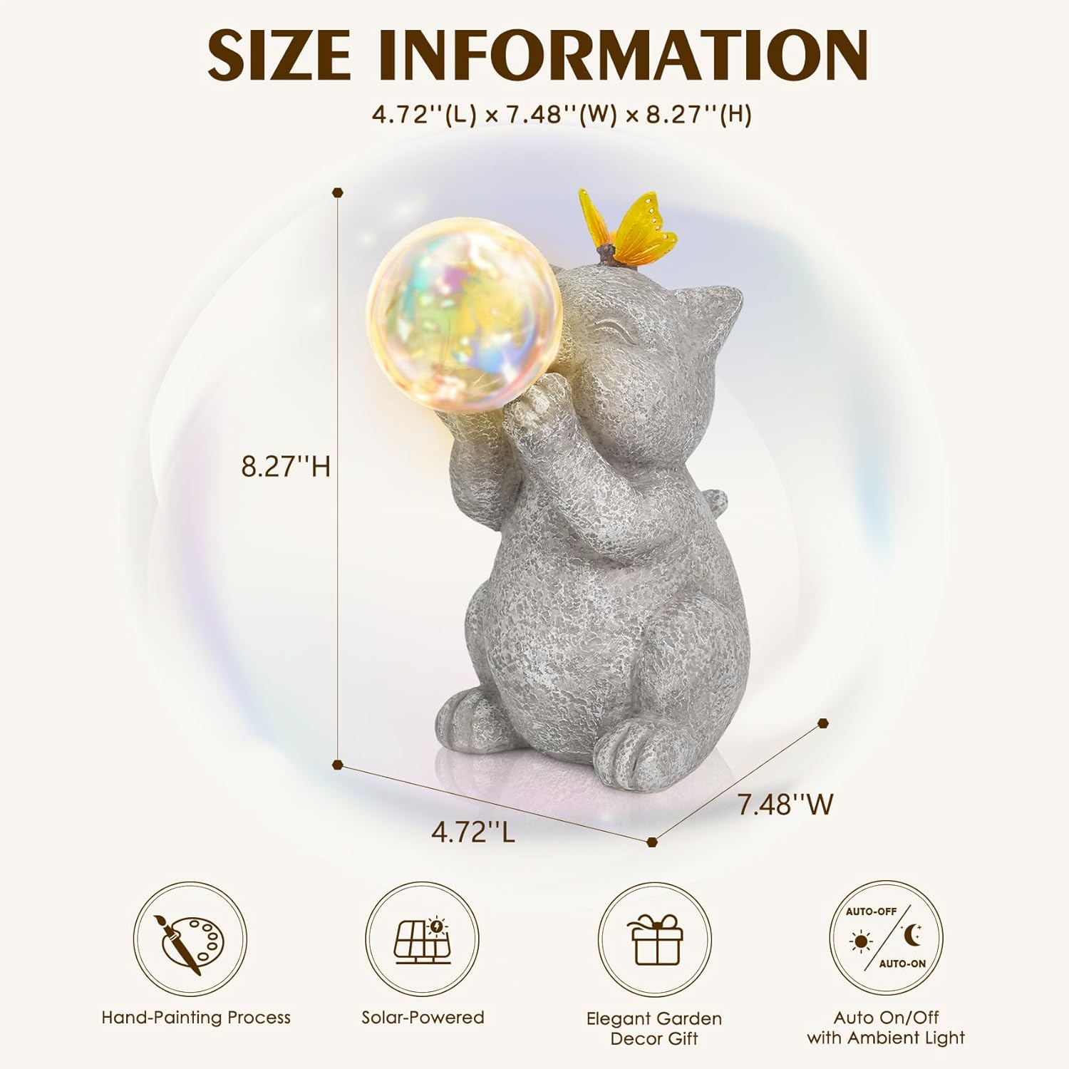- Charming Cat Design & Bubble Fun: Add whimsy to your garden statue collection with this adorable cat statue with butterfly design on its head. The bubble light creates a warm atmosphere, ideal for kids’ play or relaxing evenings