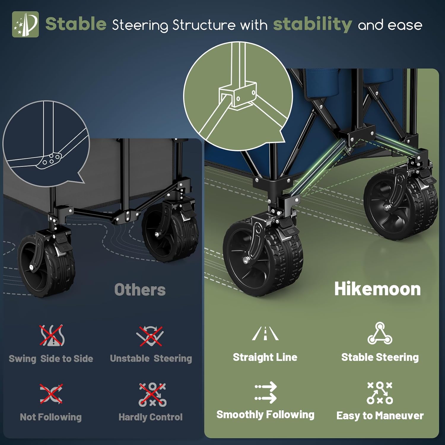- ใ๐๐๐ญ๐๐ง๐ญ๐๐ ๐๐ญ๐๐๐ฅ๐ ๐๐ญ๐๐๐ซ๐ข๐ง๐ ๐๐ญ๐ซ๐ฎ๐๐ญ๐ฎ๐ซ๐ & ๐๐๐ฃ๐ฎ๐ฌ๐ญ๐๐๐ฅ๐ ๐๐๐ง๐๐ฅ๐ ๐ ๐จ๐ฅ๐๐๐๐ฅ๐ ๐๐๐ ๐จ๐ง ๐๐๐ซ๐ญ๐ฌใ: The upgraded stable steering structure ensures the folding wagon moves in a straight line without swaying or wheel collision. The handle can be rotated 90ยฐ forward and backward, making it easier for people of different heights to use. The rebound function keeps the handle upright, so you donโt have to bend over to reach it. These designs make the wagon easy, stable, and maneuverable to pull and steer.