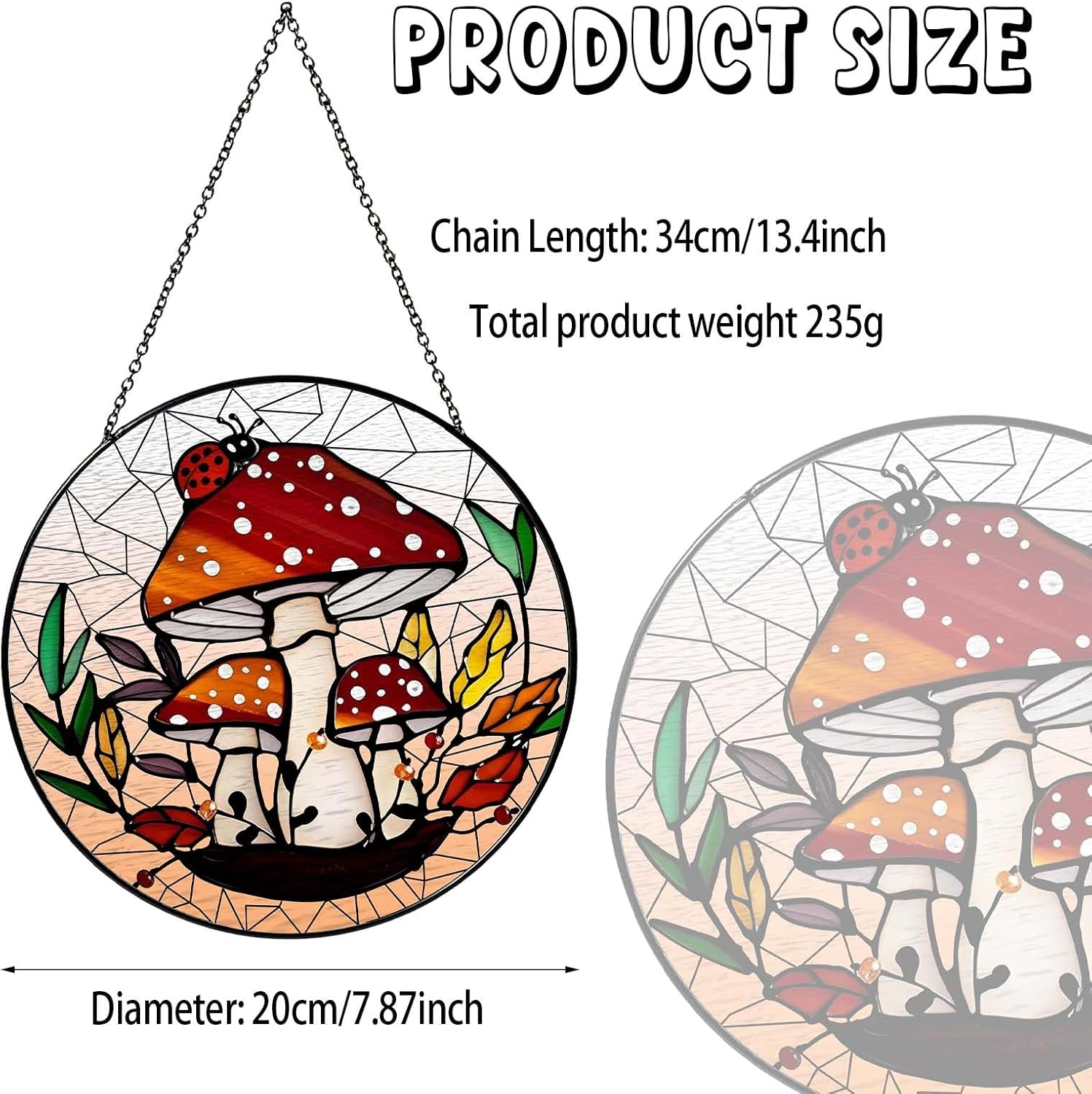 - 【Exquisite Craftsmanship】The beauty of stained glass suncatcher(20*20cm)is not comparable to plastic acrylic. Excellent craftsmen make suncatchers for windows hanging by hand, which not only makes each stained glass look classic and exquisite, but also vividly outlines different designs through delicate brushstrokes, showing the unique texture and beauty of glass materials
