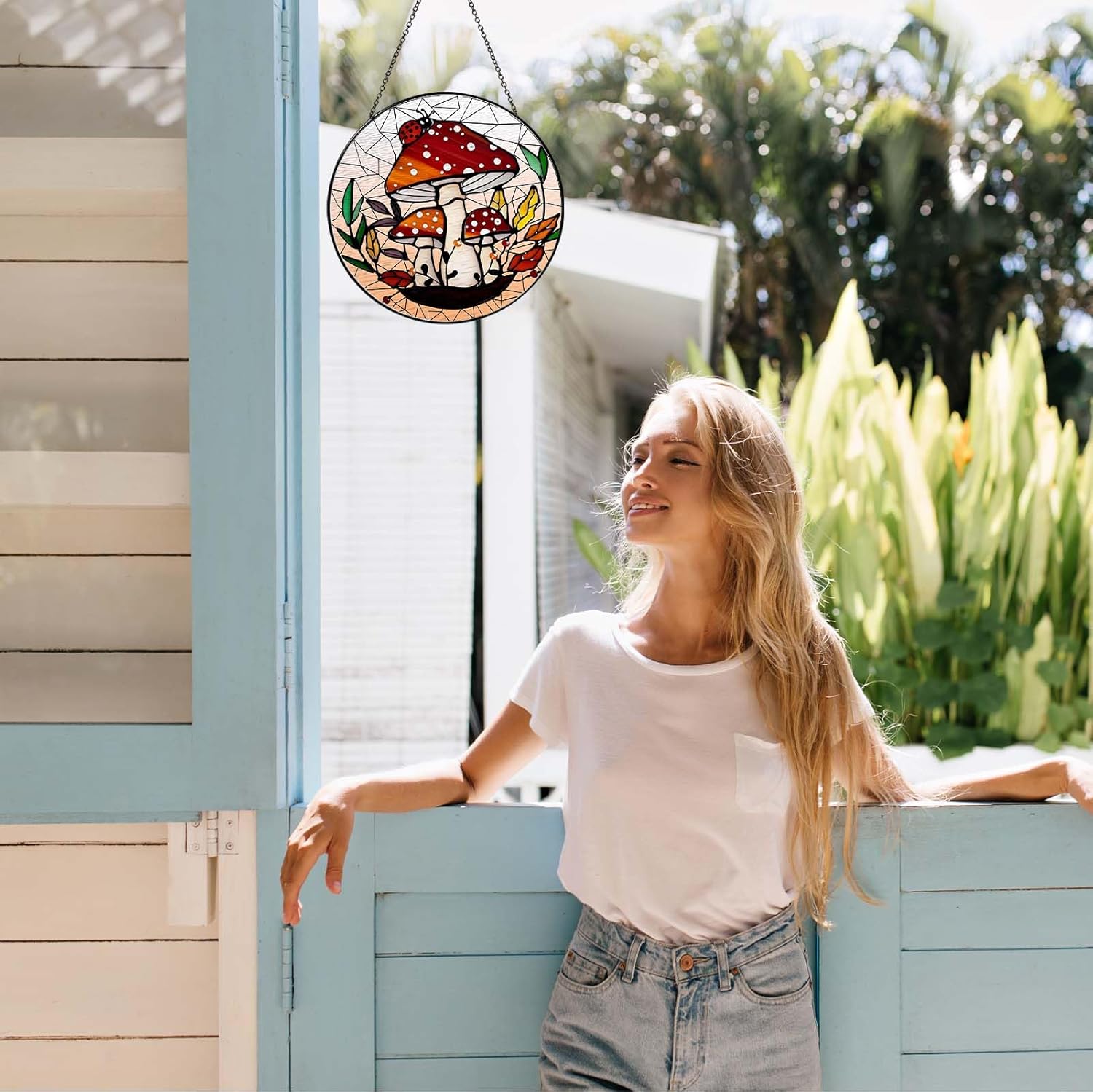 Mushroom Forest Sun Catcher Stained Glass Window Hanging Mushroom Lover Gifts for Women Wall Decor Handmade Sun Catcher Decoration for Home Graden Housewarming Gifts