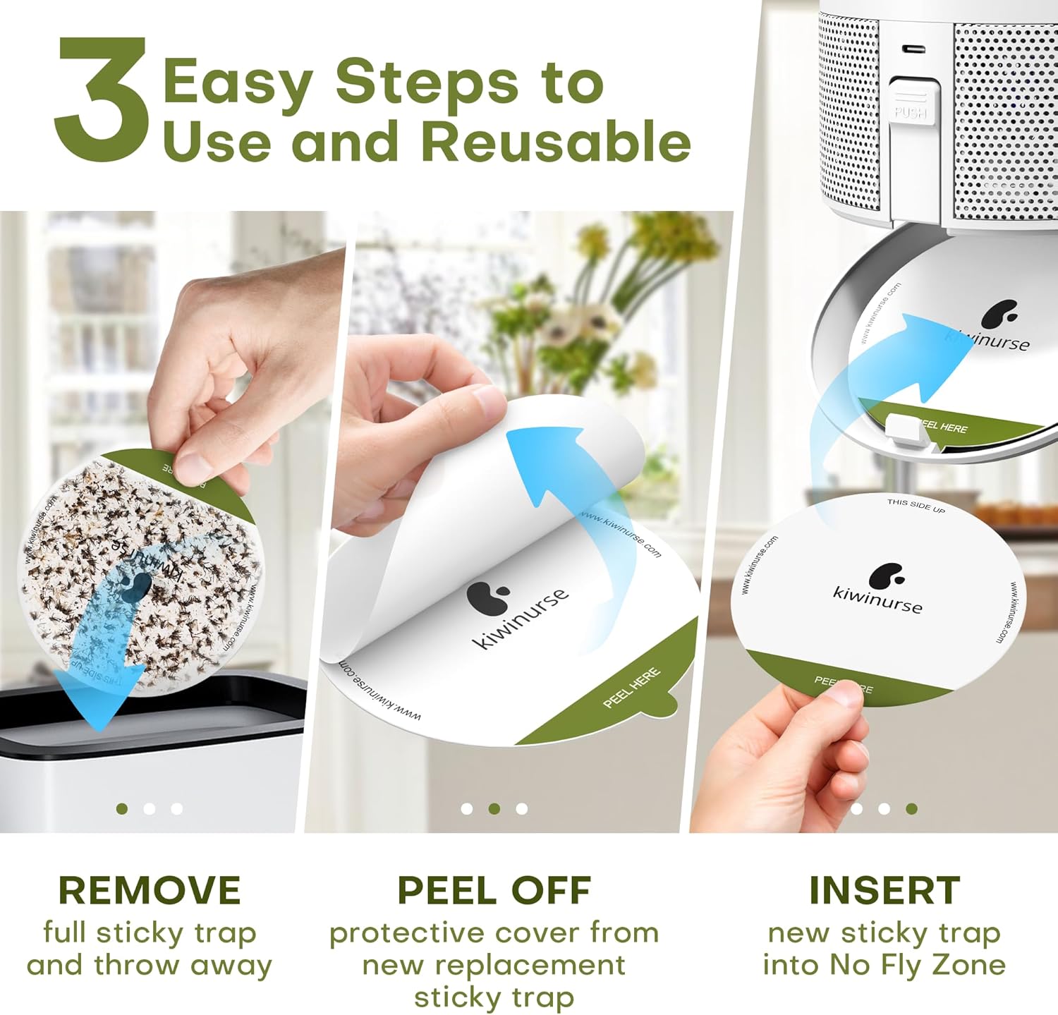 - NO ZAPPING, NO SPRAYING! - Flying insects get trapped at the bottom. Simply open the bottom, dispose of the insects if the card is full, and replace with a new glue board. It comes with 5 sticky cards for long-lasting use