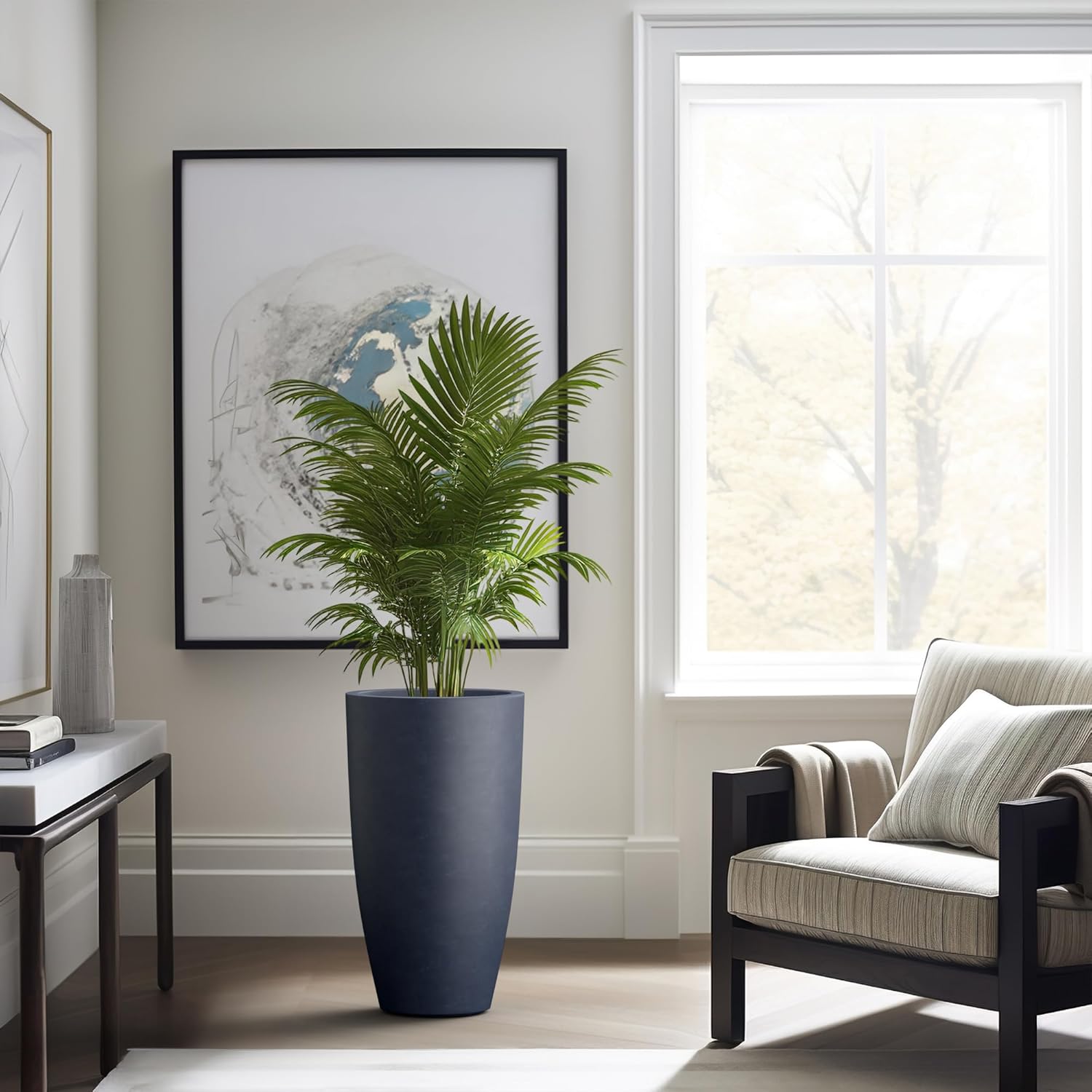 Kante 23.6" H Charcoal Concrete Tall Planters (Set of 2), Large Outdoor Indoor Decorative Plant Pots with Drainage Hole and Rubber Plug, Modern Style for Home and Garden