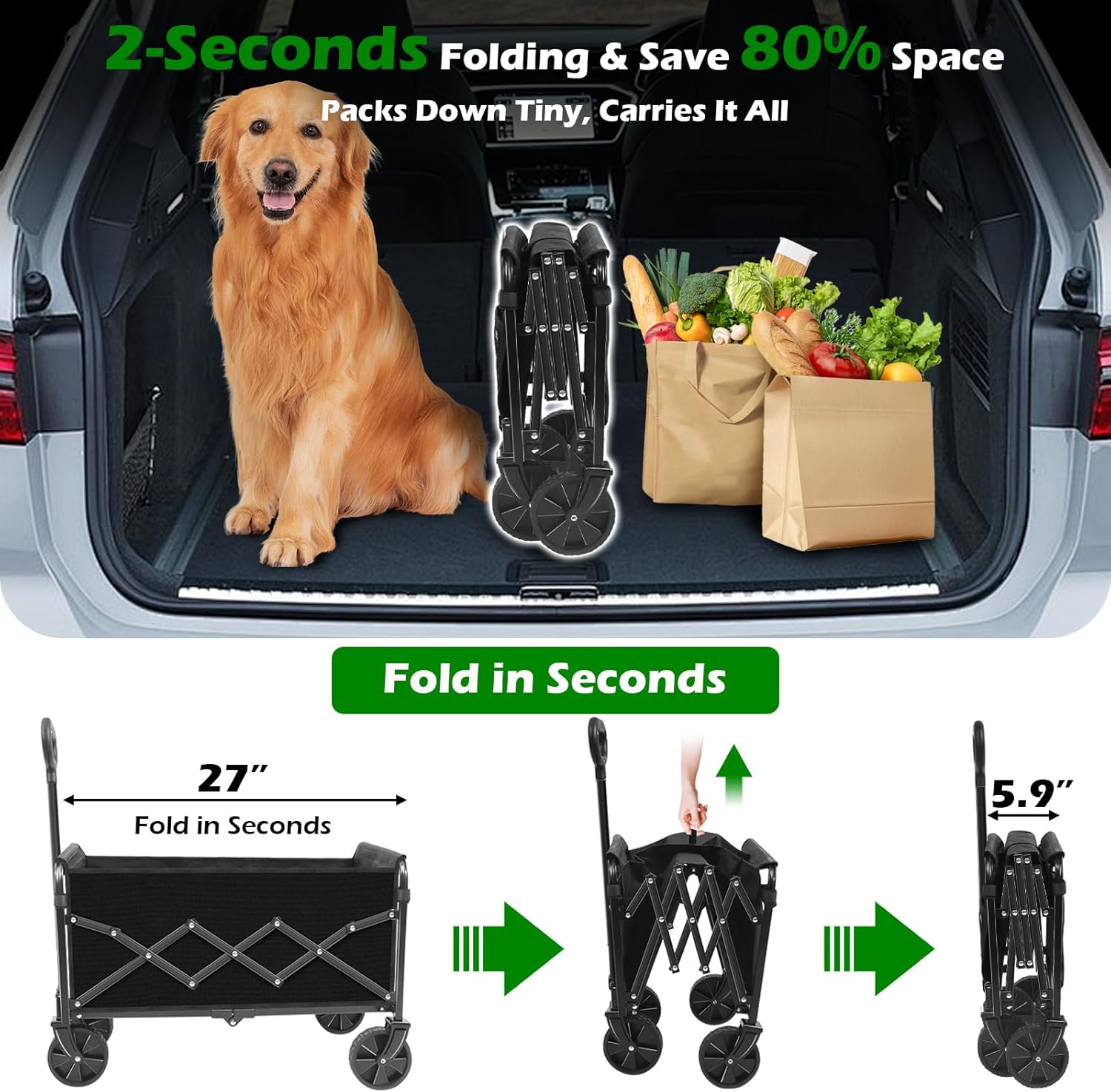 - Collapsible Wagon Cart: Our 2025 upgraded collapsible wagon cart folds flat in seconds yet expands into a full-size hauler. Quick setup, easy storage, always ready for the next outing. Ideal for groceries, beach gear, or sports equipment. Lightweight yet sturdy, this foldable collapsible wagon is your compact hauling solution. Every home needs a collapsible utility wagon this smart