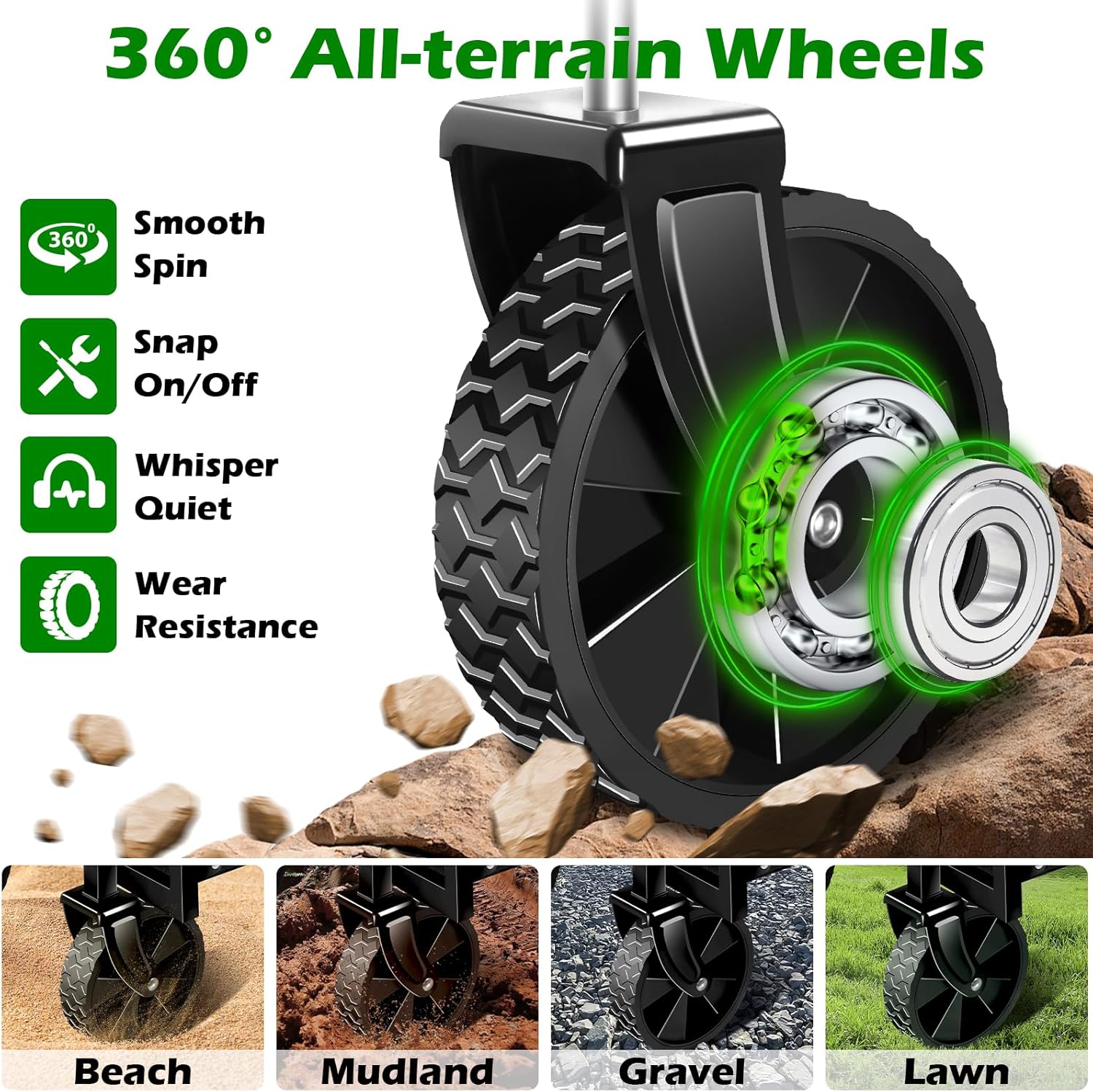 - All Terrain Wagon: Folding wagon cart with wheels features 360° swivel wagon wheels, offering smooth, precise turns on any surface—sand, grass, gravel, or pavement. Engineered for adventure, this all terrain wagon is stable even when fully loaded. A heavy duty collapsible wagon that adapts to wherever you roll. This rugged foldable wagon handles every bump in the road—ideal for families, adventurers, and weekend warriors