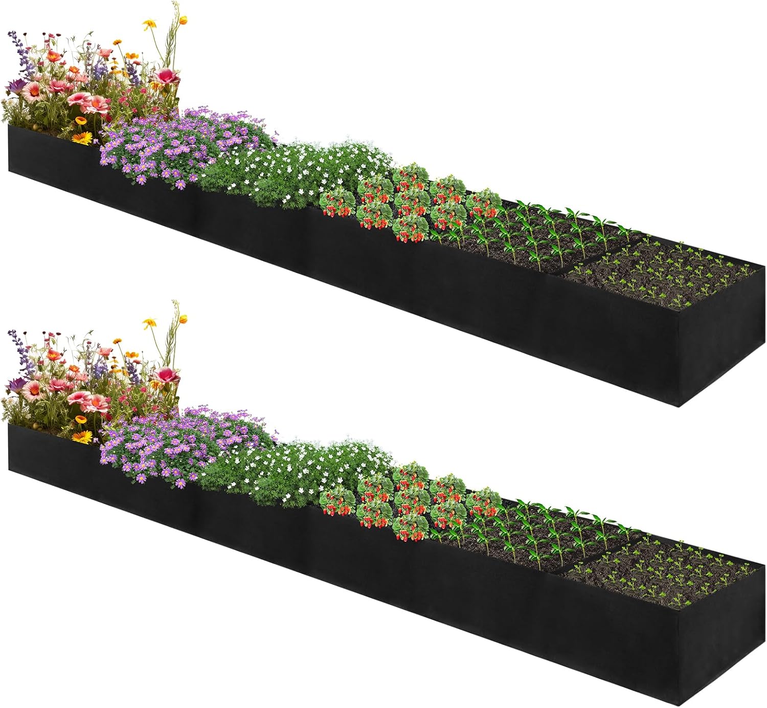 - Embark on Your Spring Gardening Adventure: Our 12x2x1ft fabric raised garden bed fulfills all your gardening needs. Featuring thickened sheets and a sturdy structure, it creates an ideal environment for growing vegetables or plants. We offer two different sizes to perfectly fit your garden space. Crafted from highly durable non-woven fabric, it's breathable, ensuring excellent airflow through the soil and root system. This allows excess water to drain effortlessly, promoting plant growth. Even in poor soil conditions, you can enjoy growing vibrant vegetables and flowers.