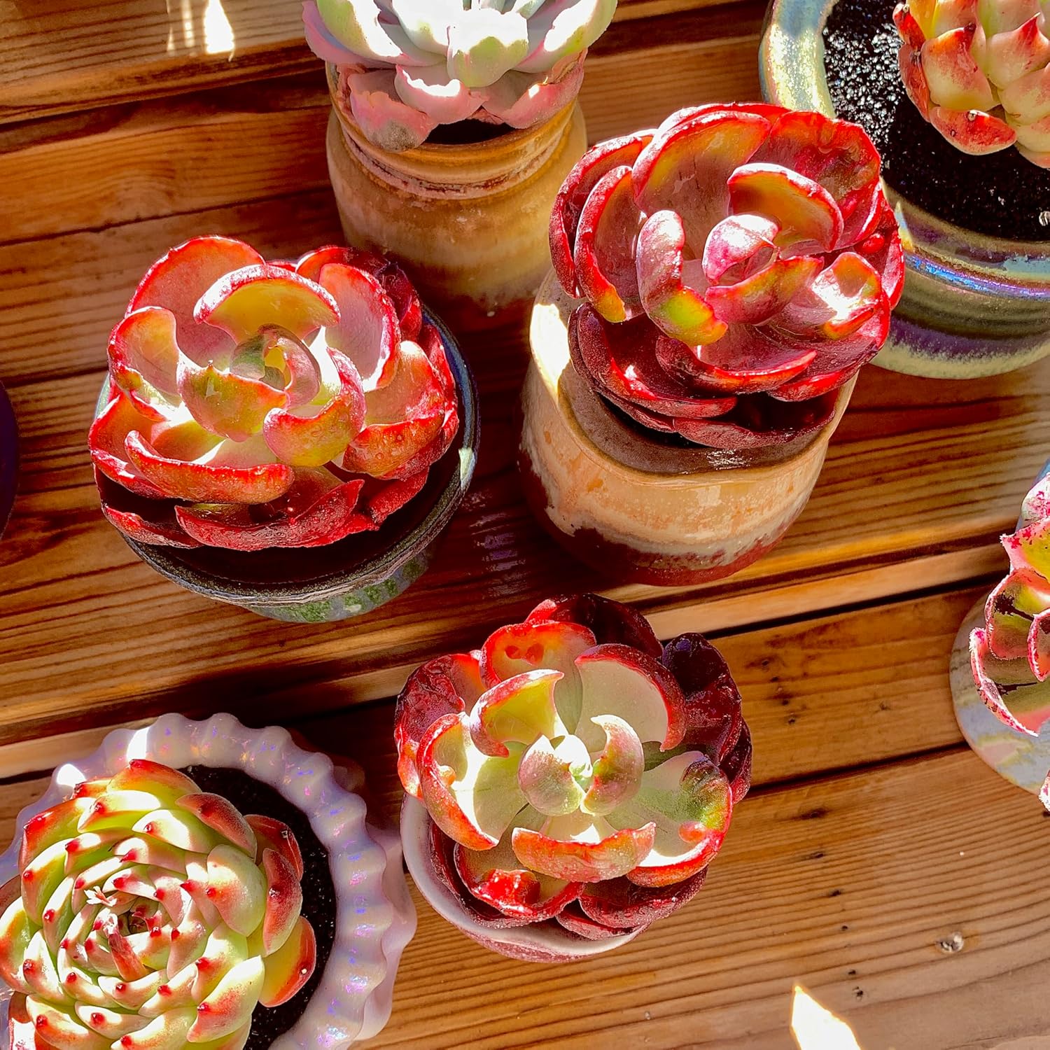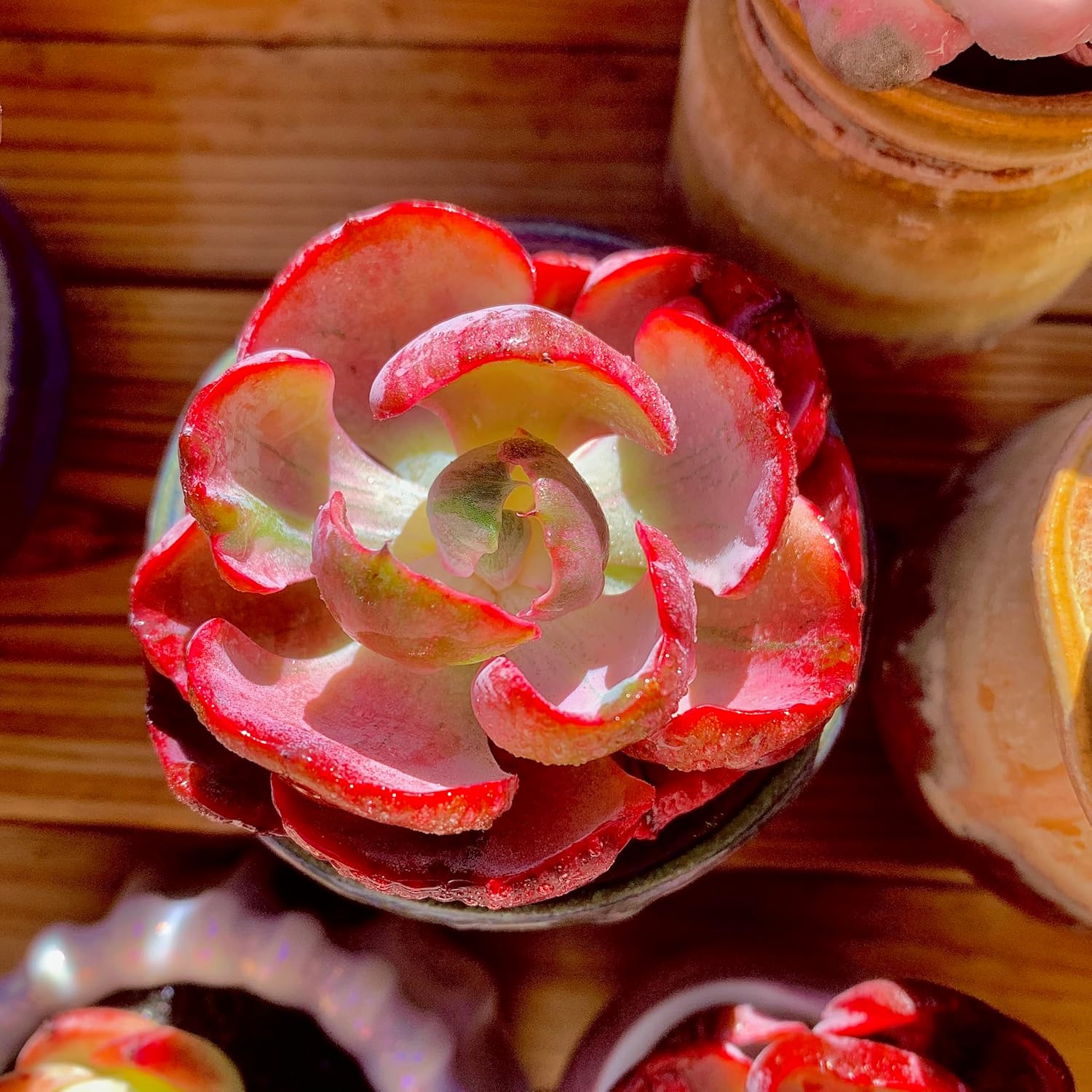 - Striking Red-Edged Foliage – This rare variegated succulent features soft, paddle-shaped leaves with creamy centers and bright red margins. A colorful standout in any plant collection.
