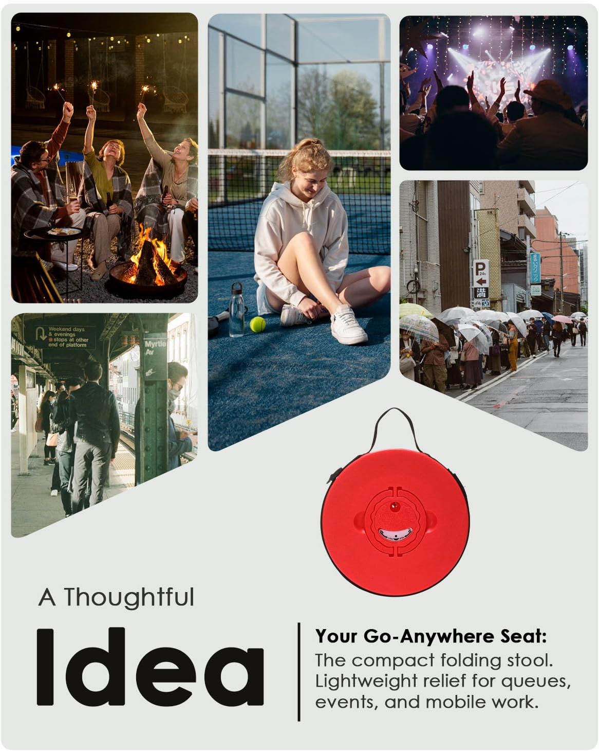 - MULTI-SCENARIO PORTABLE STOOL FOR ADULTS – Ideal collapsible stools for adults at camping trips, sports events, concerts, long queues, garden parties, RV travels, and as an temporary seat.