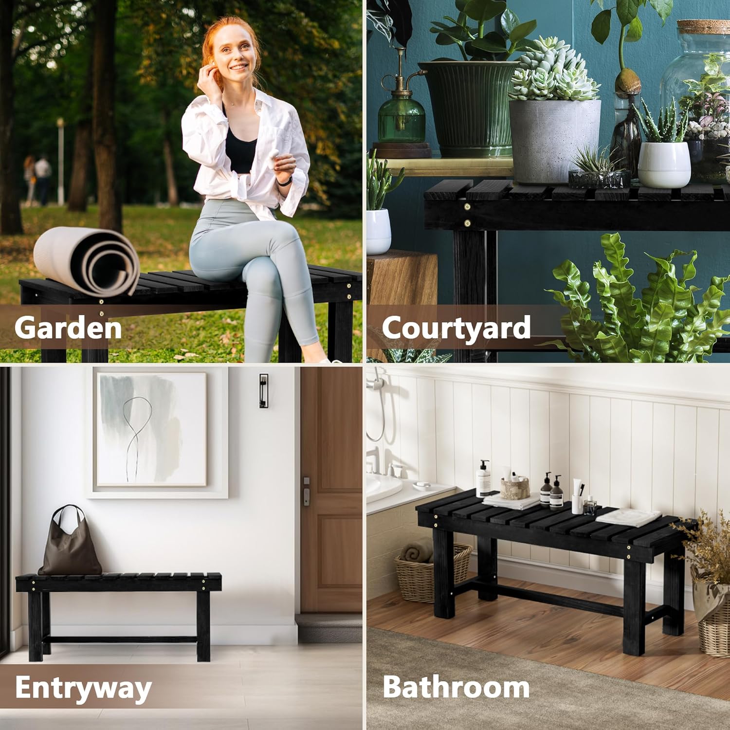 - MULTIFUNCTIONAL BENCH - Beyond being a bench, it doubles as a plant stand, shoe rack, storage shelf, or even a dining chair, offering practical solutions for both indoor and outdoor use
