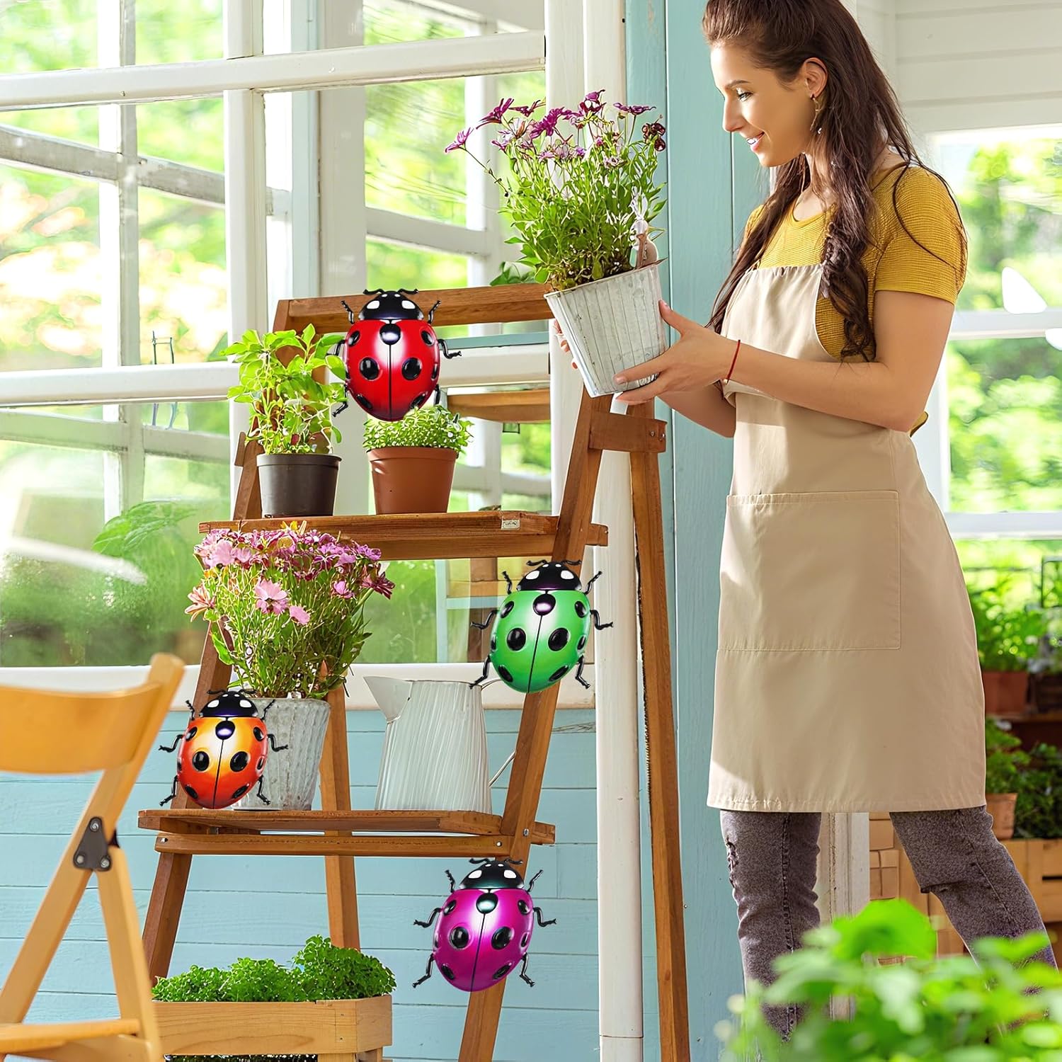 ULENDIS 4 PCS Cute Metal Ladybugs Wall Art Decor, 6.3 Inch Large Outdoor Wall Art Patio Fence Decorations, Colorful Yard Art Lawn Ornaments for Backyard Balcony