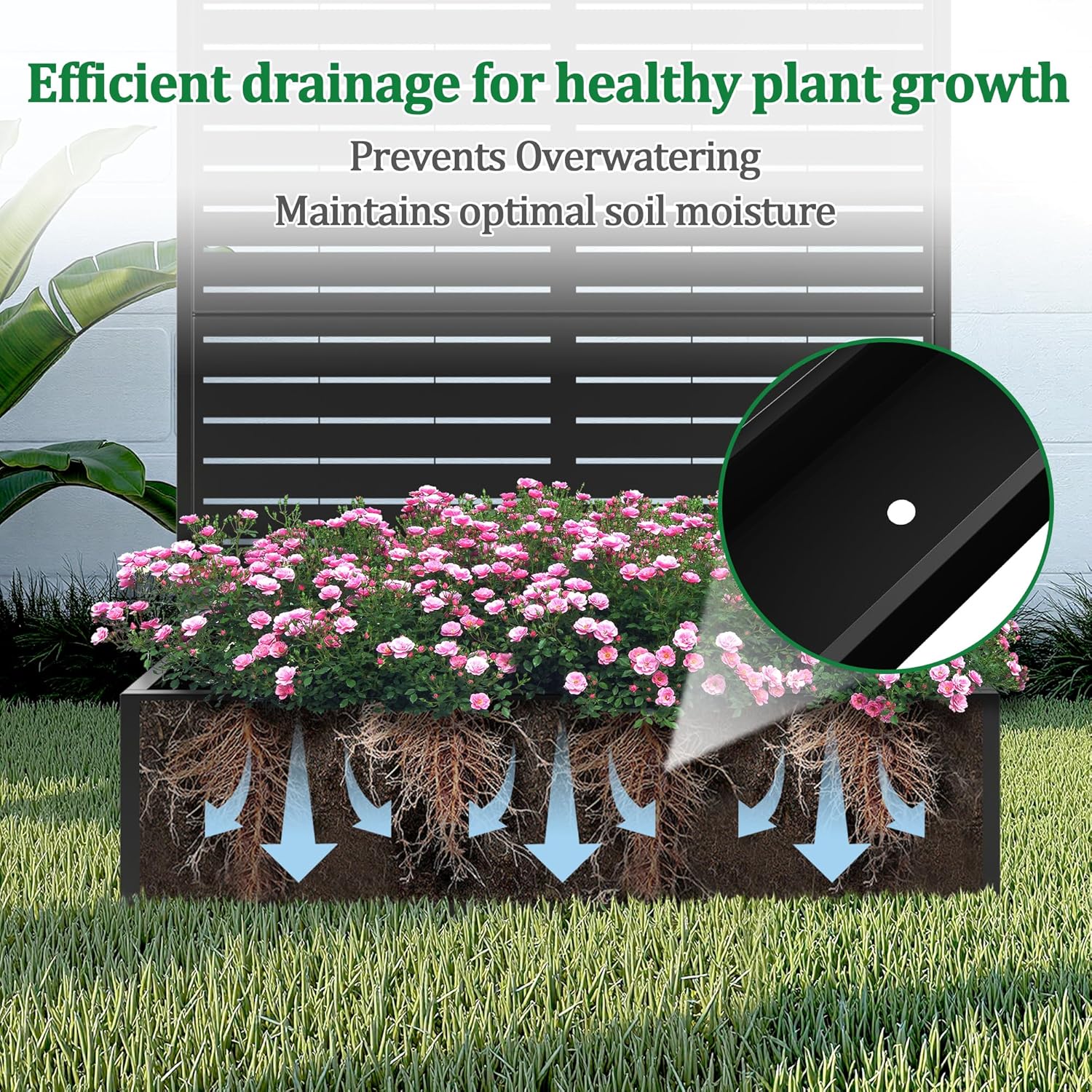 - Easy Installation and Maintenance: The metal planter box is crafted for straightforward setup and user convenience. The raised planter can be put together swiftly without requiring complex tools or detailed instructions. The flower bed’s sturdy materials and solid construction reduce maintenance needs, allowing you to enjoy gardening with minimal hassle.