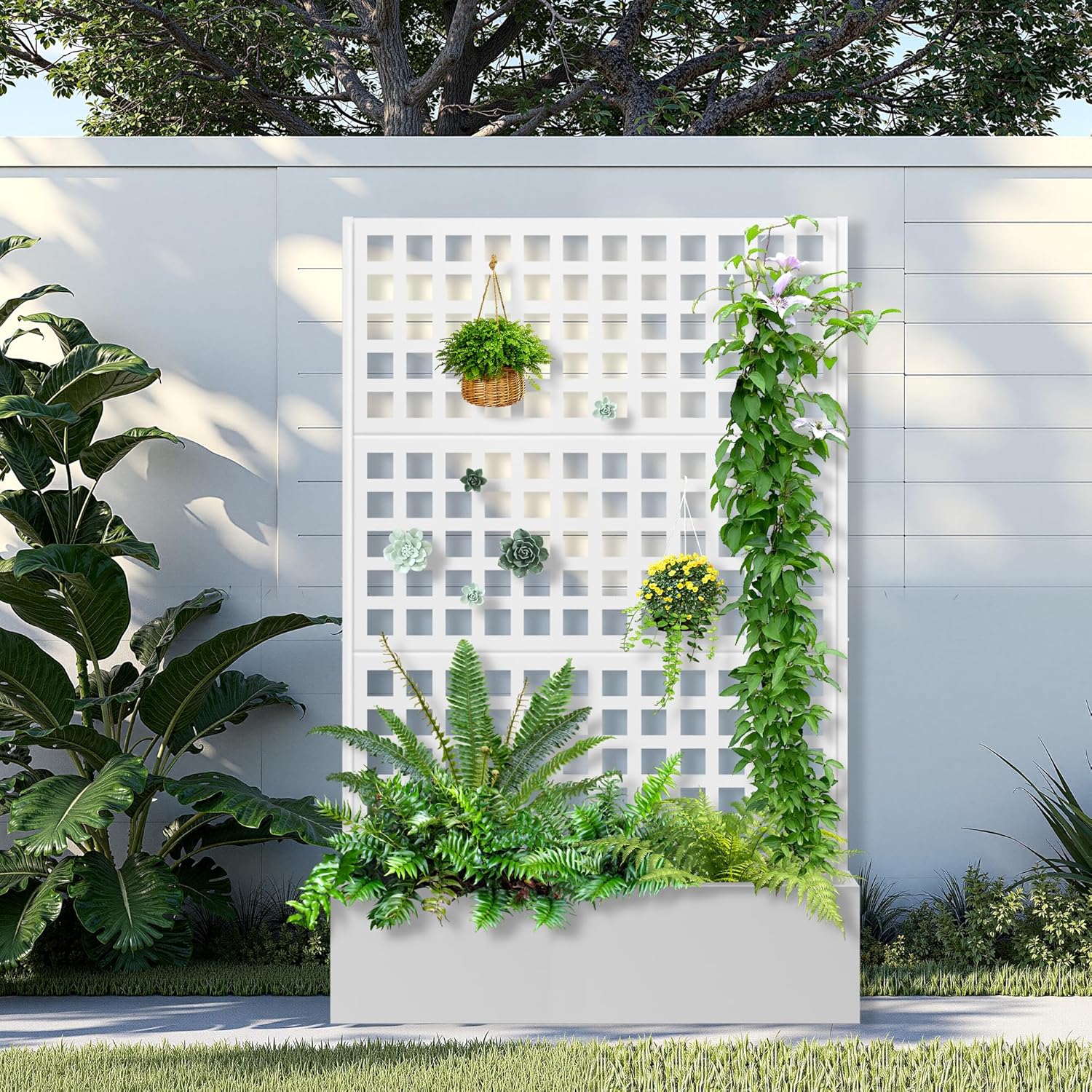 - Space-Saving Design: The planter box is combined with the trellis to offer a space-efficient and visually appealing gardening solution. The vertical design of the trellis optimizes planting space while preserving a compact footprint. The outdoor raised garden bed’s upright structure is perfect for those with limited space to create a charming garden on a terrace or in a small yard.