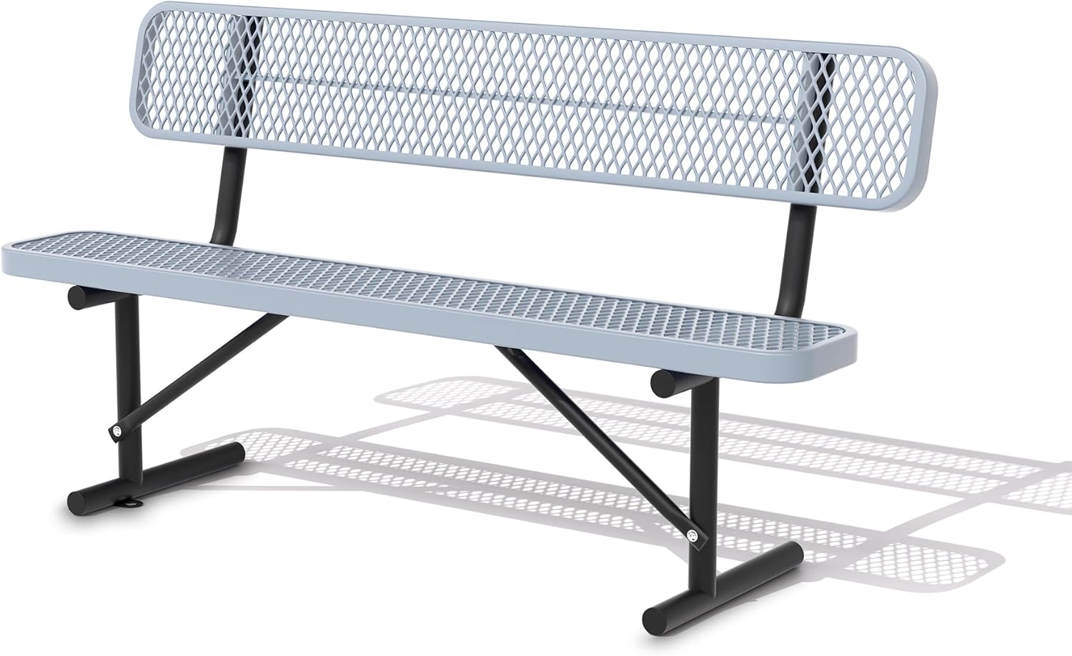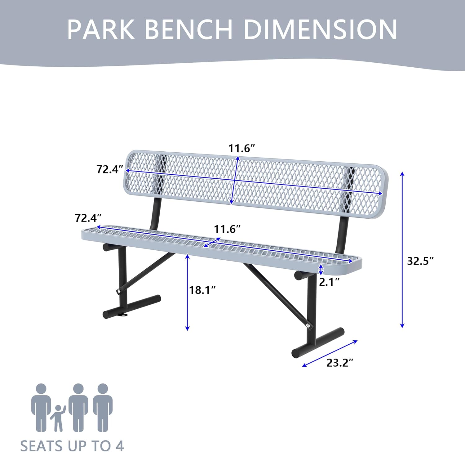 4/6/8 Feet Park Bench for Outside Heavy Duty Metal, Garden Benches Outdoor Bench with Backrest & Portable Frame, for Shopping Malls Stores Parks Patios Decks, Grey