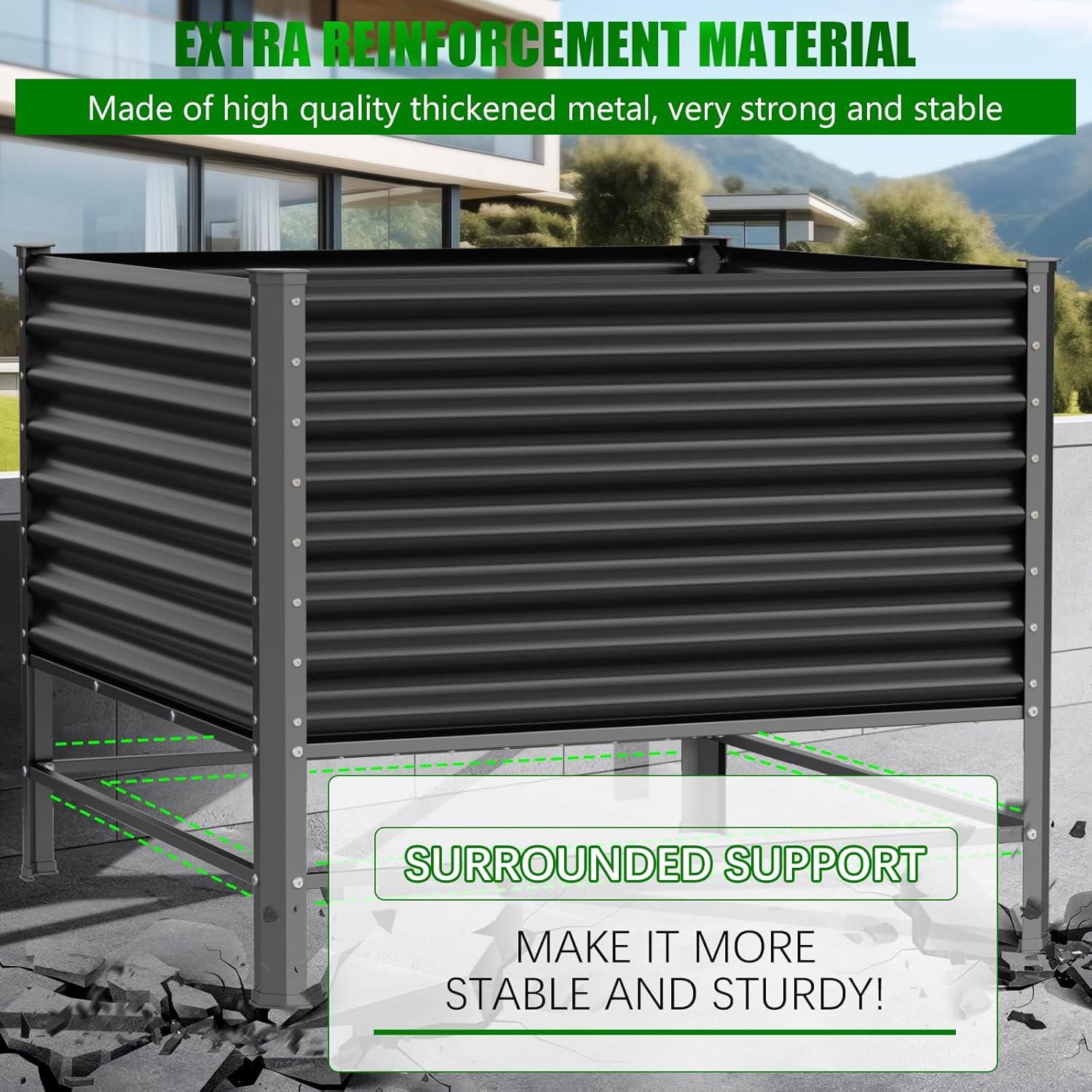 - 【Spacious Planting Space】-Our raised garden bed with legs measures 48x48x37 inches, 240 gallons, 1200LB capacity.To enhance safety and prevent any potential discomfort, we've added protective pads to the four corners both above and below the raised garden bed. These pads not only effectively safeguard against sharp corners that may poke individuals but also provide protection for your floors by preventing scratches.