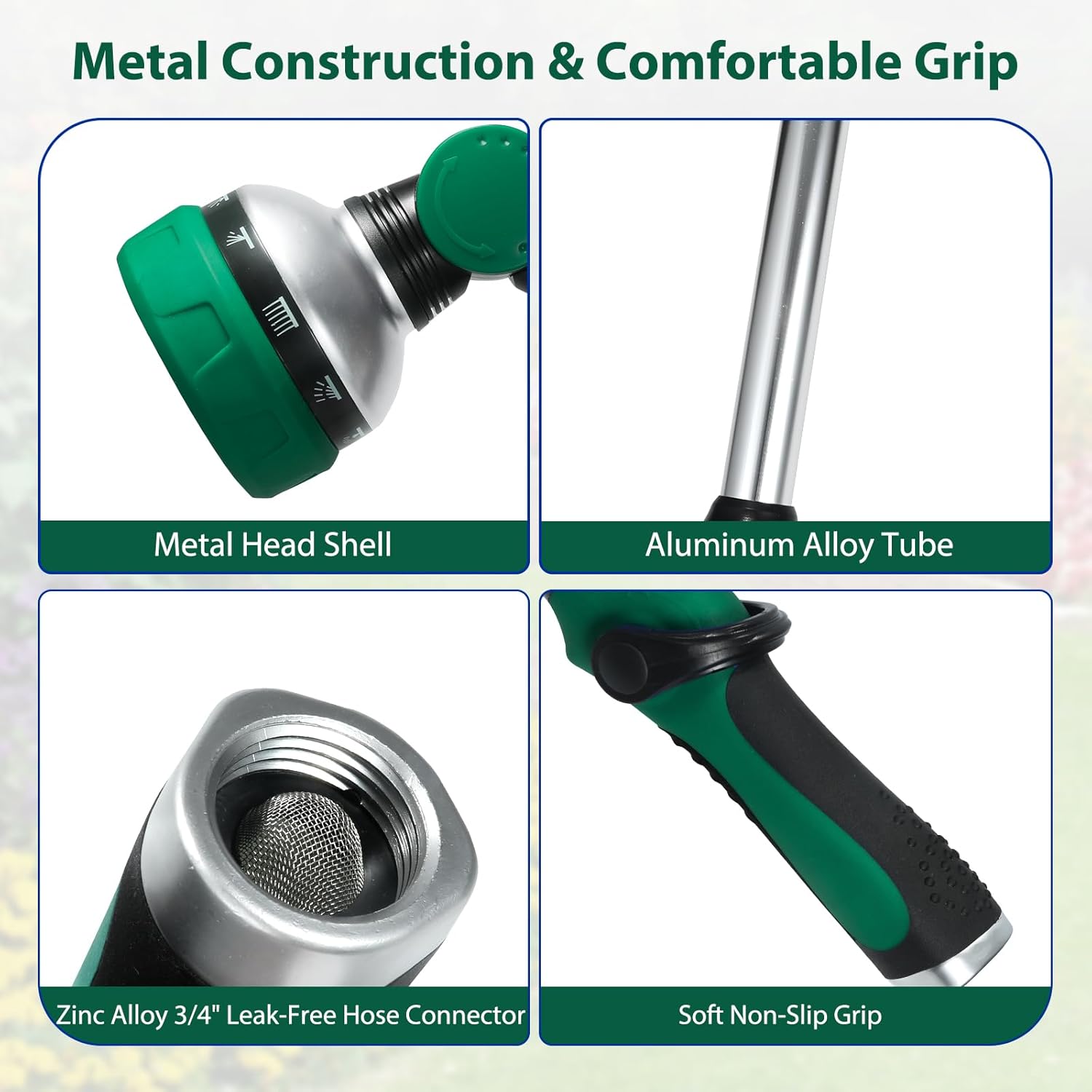 - ă10 Versatile Spray Patternsă-- Choose from Shower, Mist, Flat, Full, Cone, Center, Jet, Angle, 1/4 Vert, and 1/2 Vert modes. Adjustable flow control for precise watering, perfect for delicate plants and seedlings