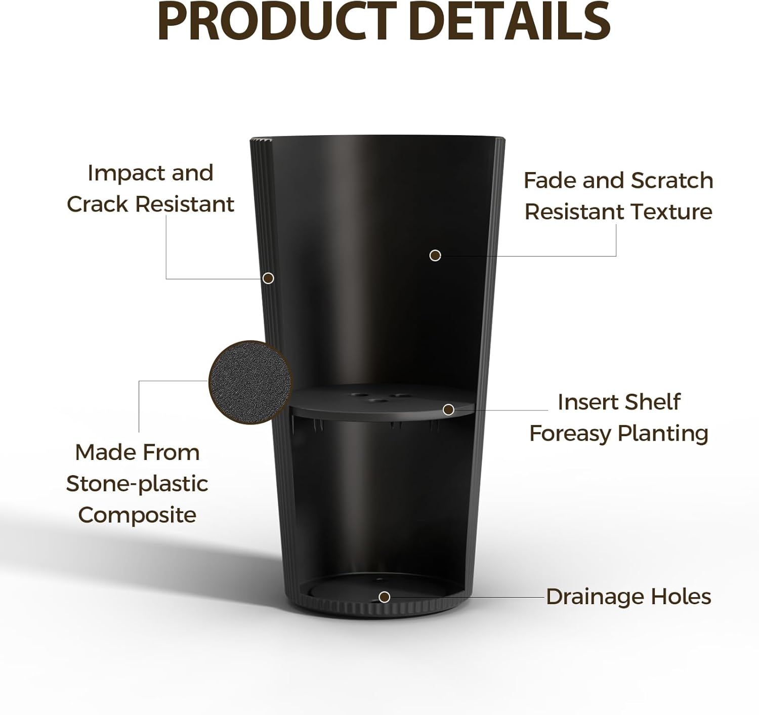 - Weatherproof Construction: Made from high-quality, UV-resistant plastic (heavy-duty resin), these planters withstand extreme temperatures without fading or cracking. Lighter than ceramic pots but just as sturdy