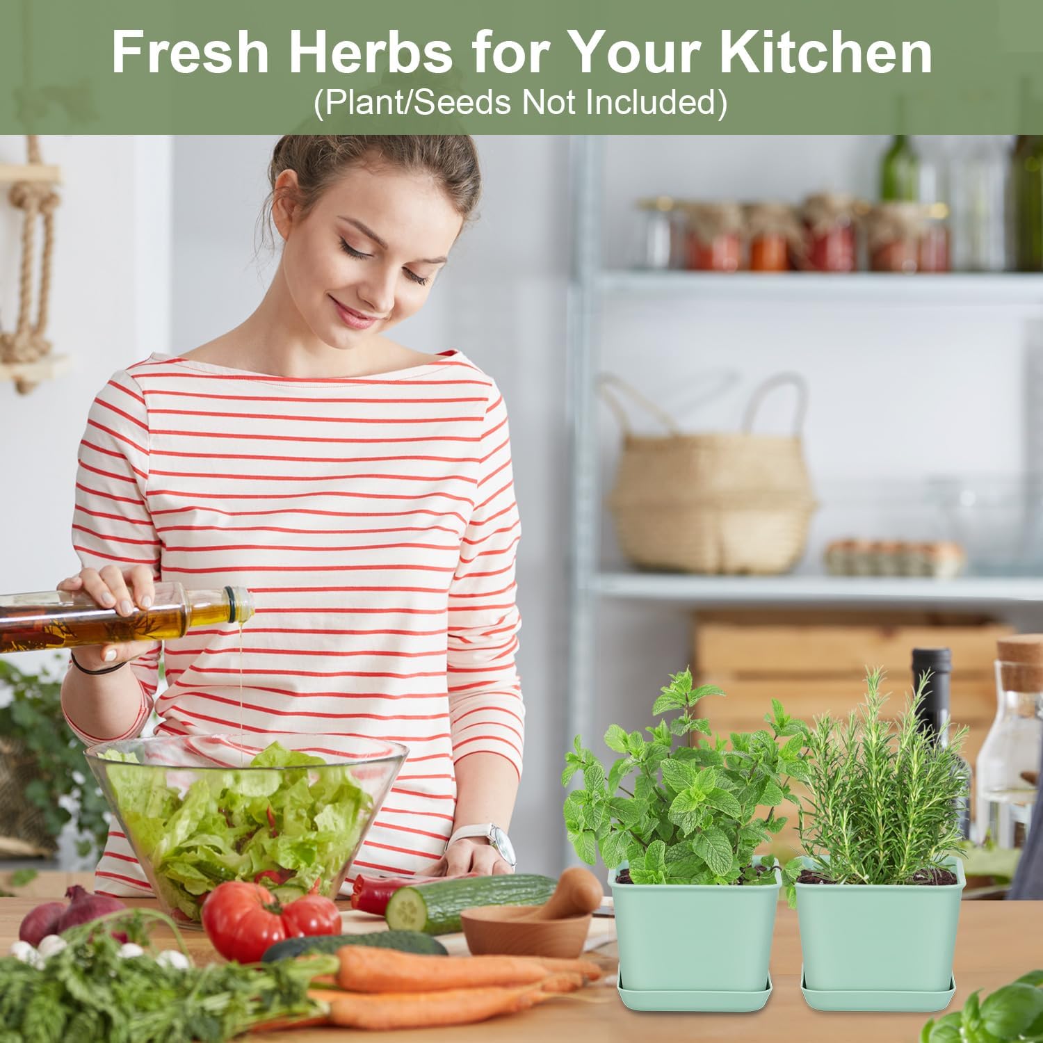 Herb Garden Planter Indoor Kit Pots for Indoor/Outdoor Plants 4 Packs Windowsill Plant Pots with Drainage and Tray, Window Pot for Indoor Plants (Green)