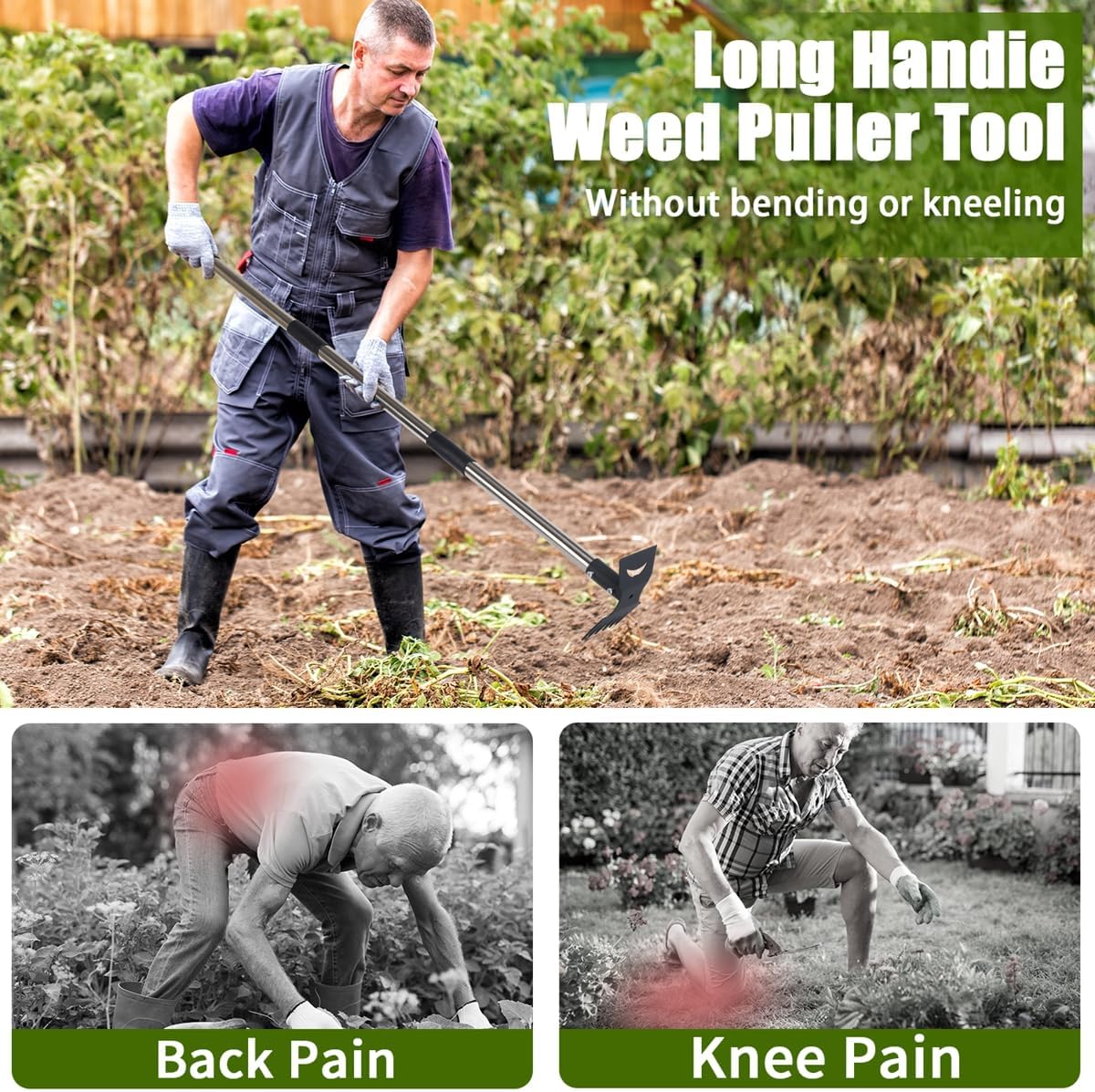 - SAVE YOUR BACK:Adjustable-length handle (17"-78") stand-up weeder. Adapts to all heights ,eliminates kneeling/crawling in yard work