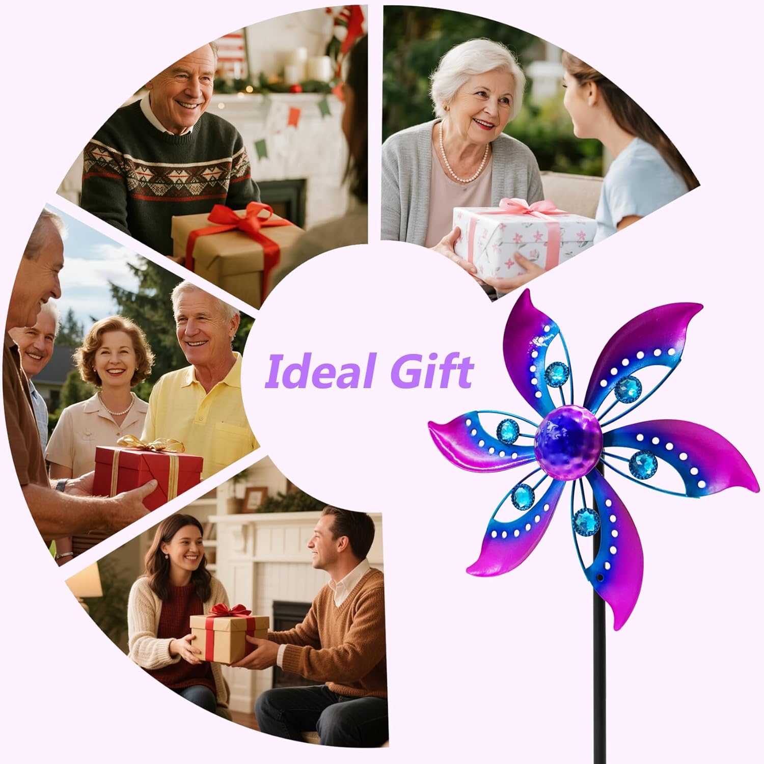 Wind Spinners Outdoor Metal, 10.63" W*37" H Pinwheels for Yard and Garden Decor, Kinetic Wind Sculpture Spinner Yard Art (Purple)