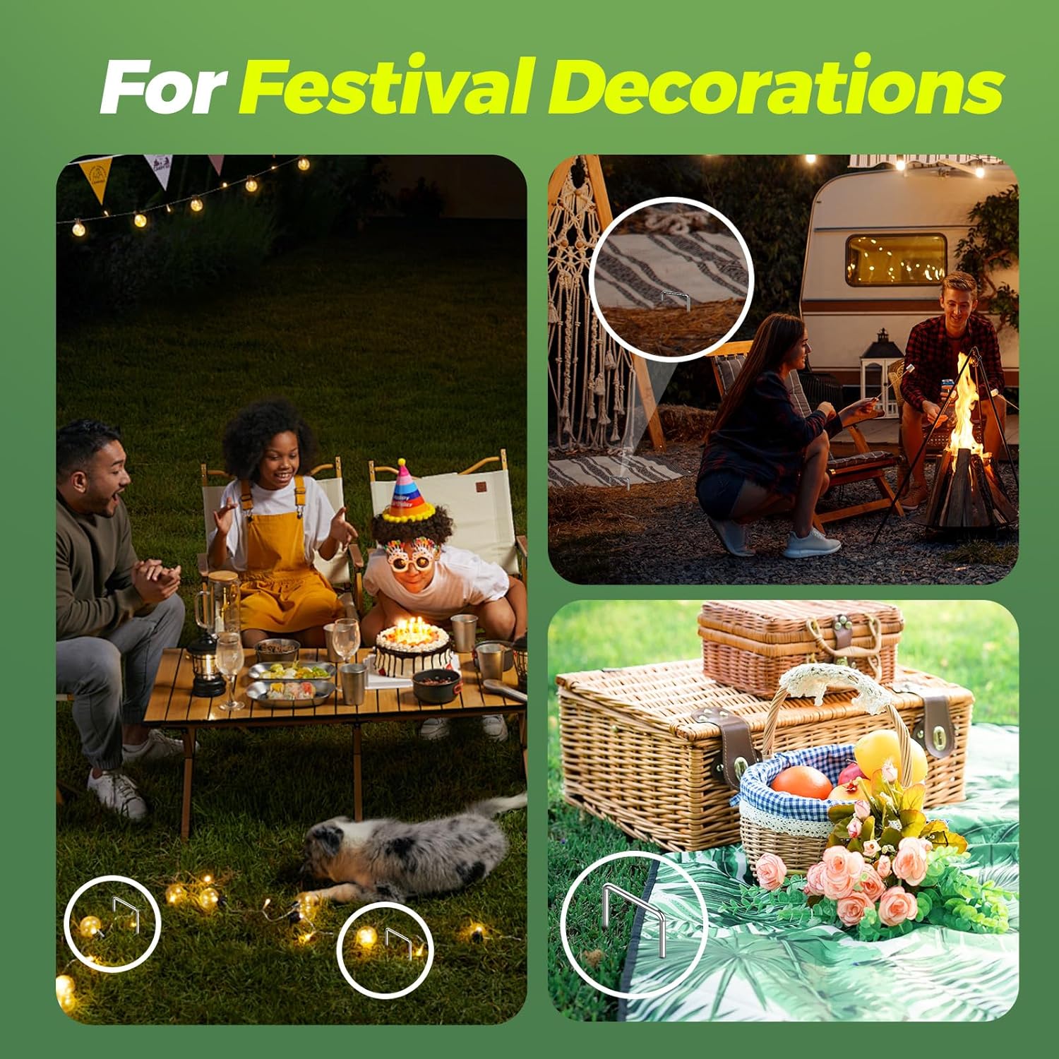 - 【Two Sizes】Verdeluxe versatile pins are useful for outdoor spaces.Need secure landscape fabric,weed barriers or garden hoses to keep your yard tidy?Grab the 25-pack. Tackling a big project-Anchor Christmas lights,Halloween balloon clusters or holiday decorations.Fence in dogs, rabbits, or squirrels to protect plants.The 50-pack has you covered. These ground stakes work everywhere: gardens, fields, backyards, even campsites. Fix vines, anchor balloons, secure fences—one tool, a hundred uses.