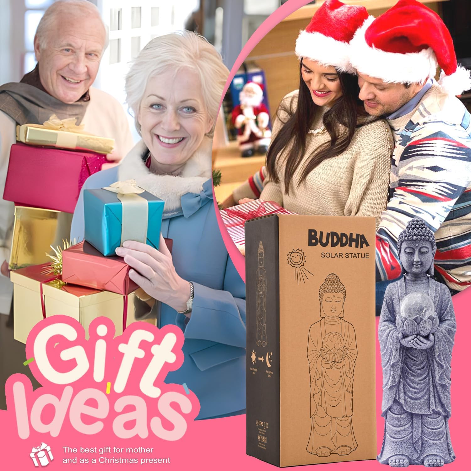Goodeco Buddha Statue with Solar Lotus – 14.4 Inch Tall Large Garden Buddha Statue for Outside, Outdoor Zen Garden Statues