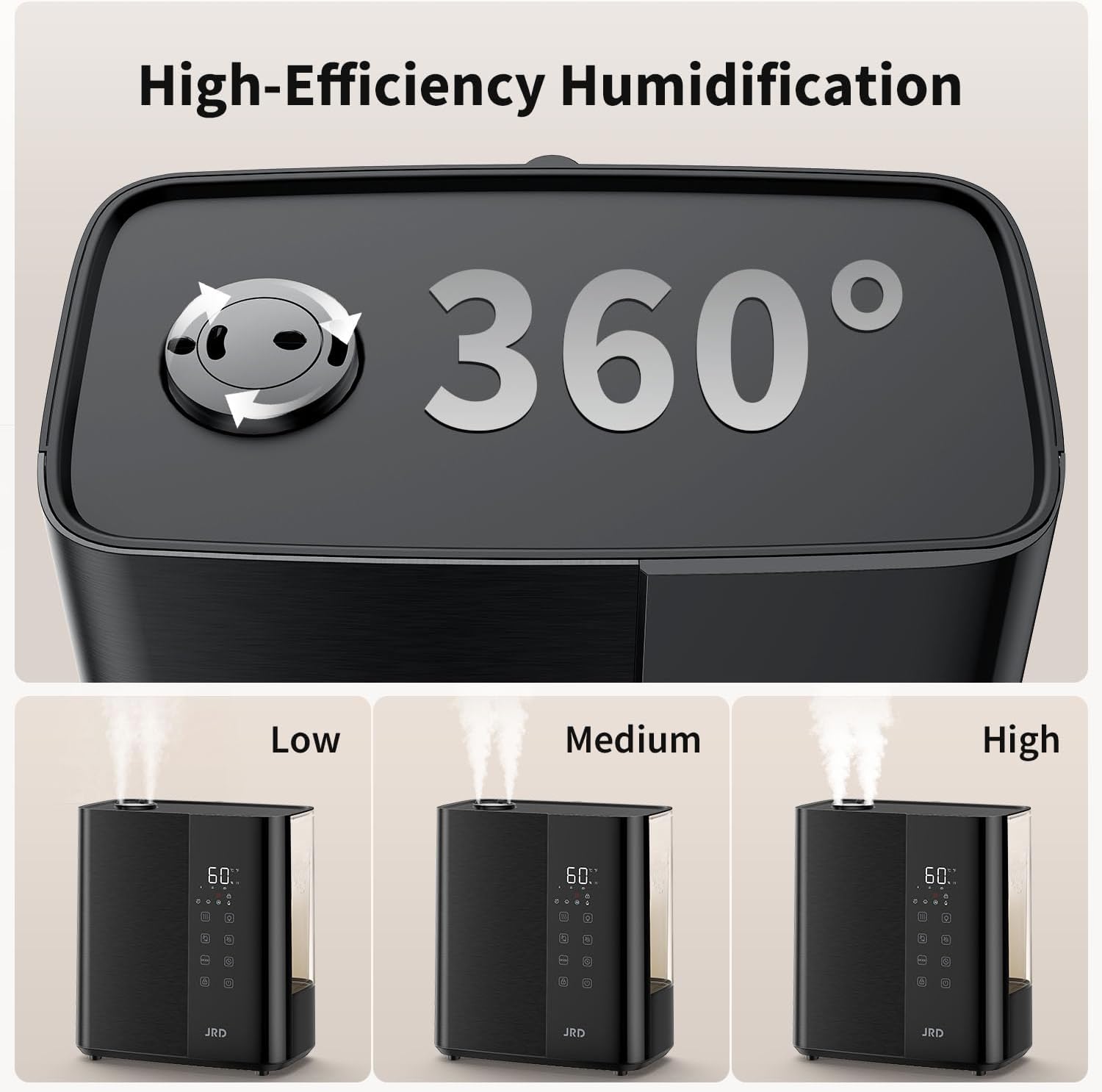 - Safe & Smart Humidifier: JRD smart humidifiers includes a dry-burn protection feature for maximum safety. If the water level is too low, a red indicator light will turn on as a refill reminder, and the device will shut off automatically to prevent dry-burn risks.