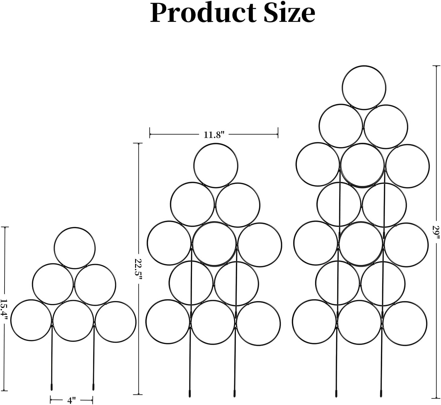 - 3 pack plant trellises, each trellis measures 11.8"(W) x 15.4"(H), the proper size for supporting your climbing plants; These trellises are perfect for smaller houseplants, providing just the right amount of support for their growth. They're sturdy enough to keep your plants upright and thriving, without overpowering their delicate stems.