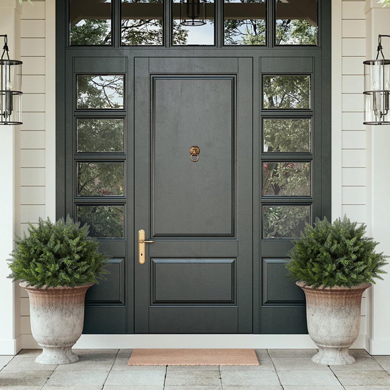23.6Inch Artificial Cedar Topiary, 2 Pack UV Resistant Faux Evergreen Shrubs with Ground Spikes, Indoor Outdoor Potted Plants for Porch, Garden, Front Door Decor