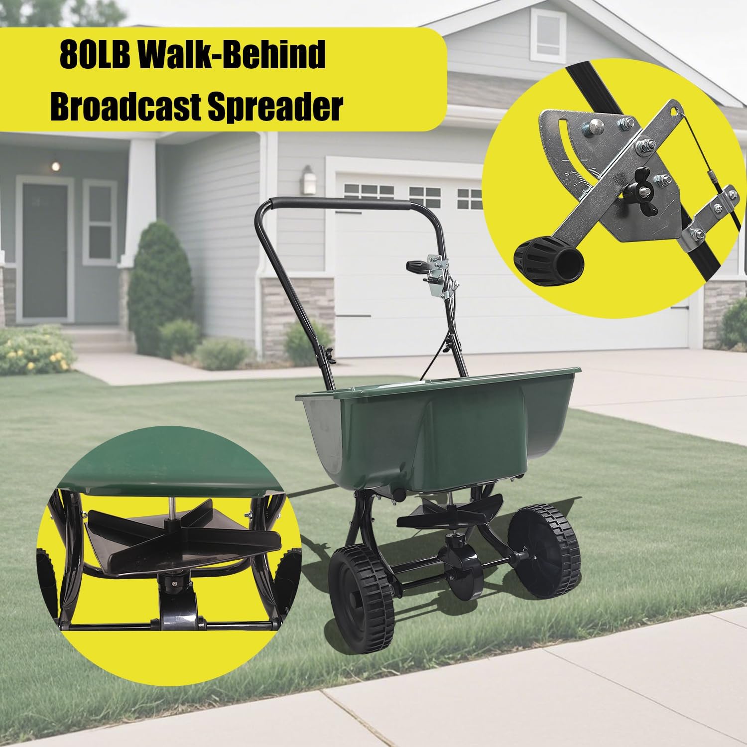 80LB Walk-Behind Broadcast Spreader for Seed,Fertilizer,Salt,Ice Melt, Fertilizer Spreader with Adjustable Drop Rate, Seed Spreaders for Lawns