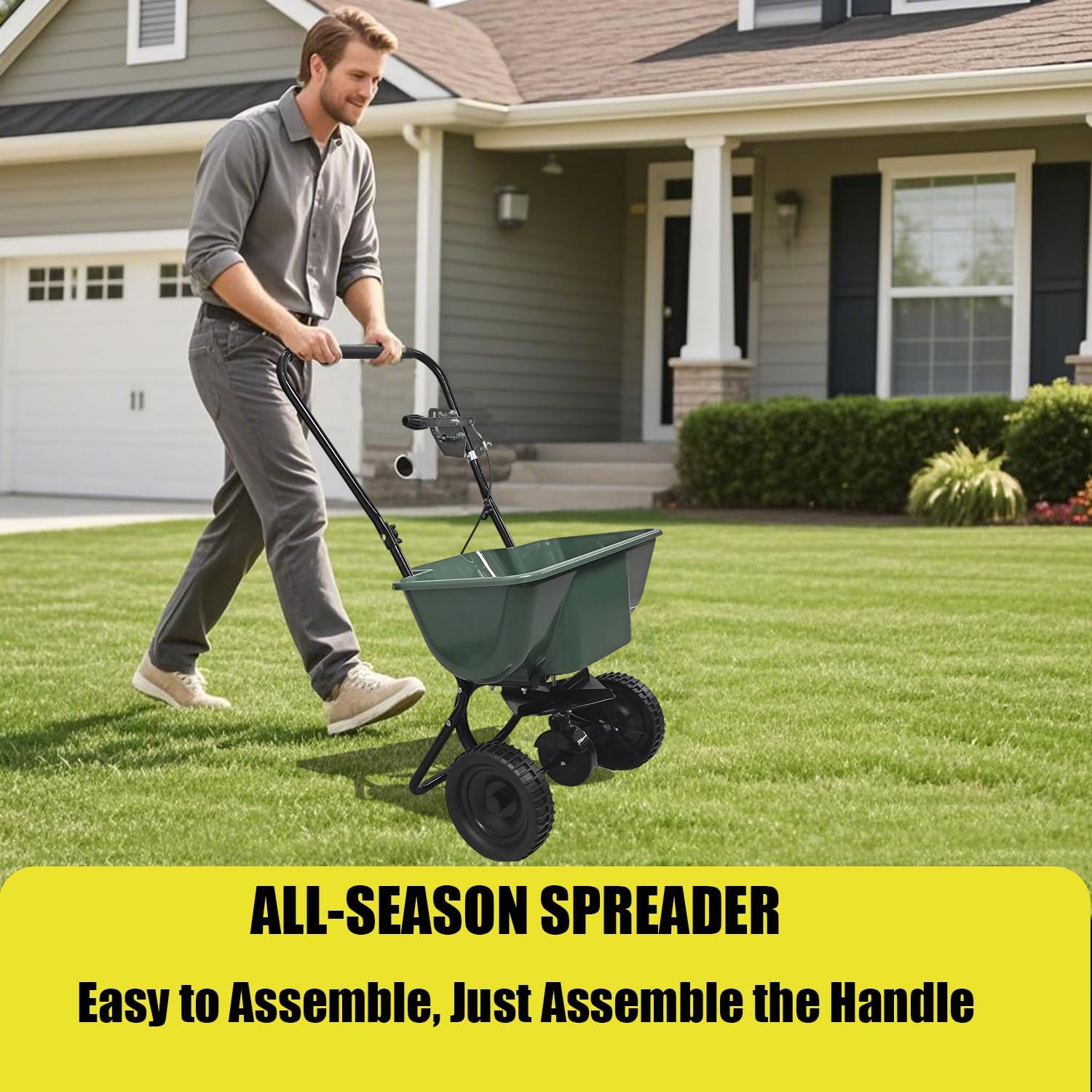 - All - Terrain Maneuverability: The 12 - inch skid - resistant rubber wheels equip this spreader for lawns to smoothly navigate uneven terrain, perfect for both fertilizer and seed application.