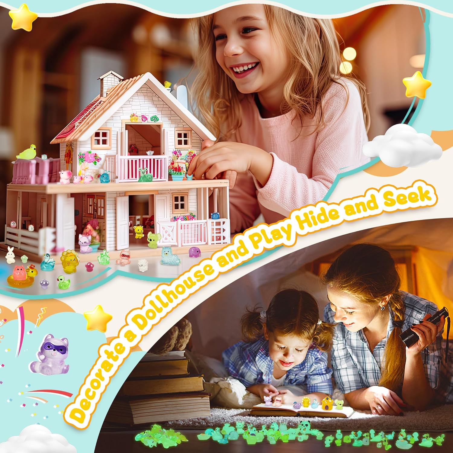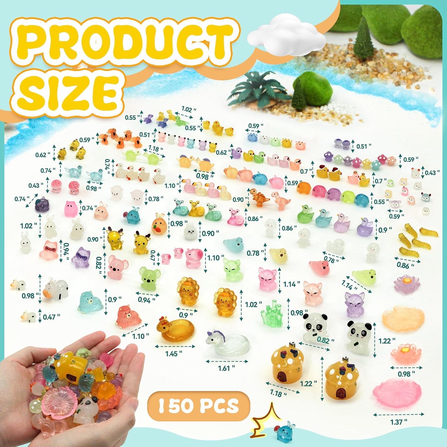 - Wide Variety: Carefully selected 150 pcs mini resin animal collection features 48 different species. Each piece emits a soft glow in the dark, adding a magical and dreamy atmosphere to your miniature landscapes
