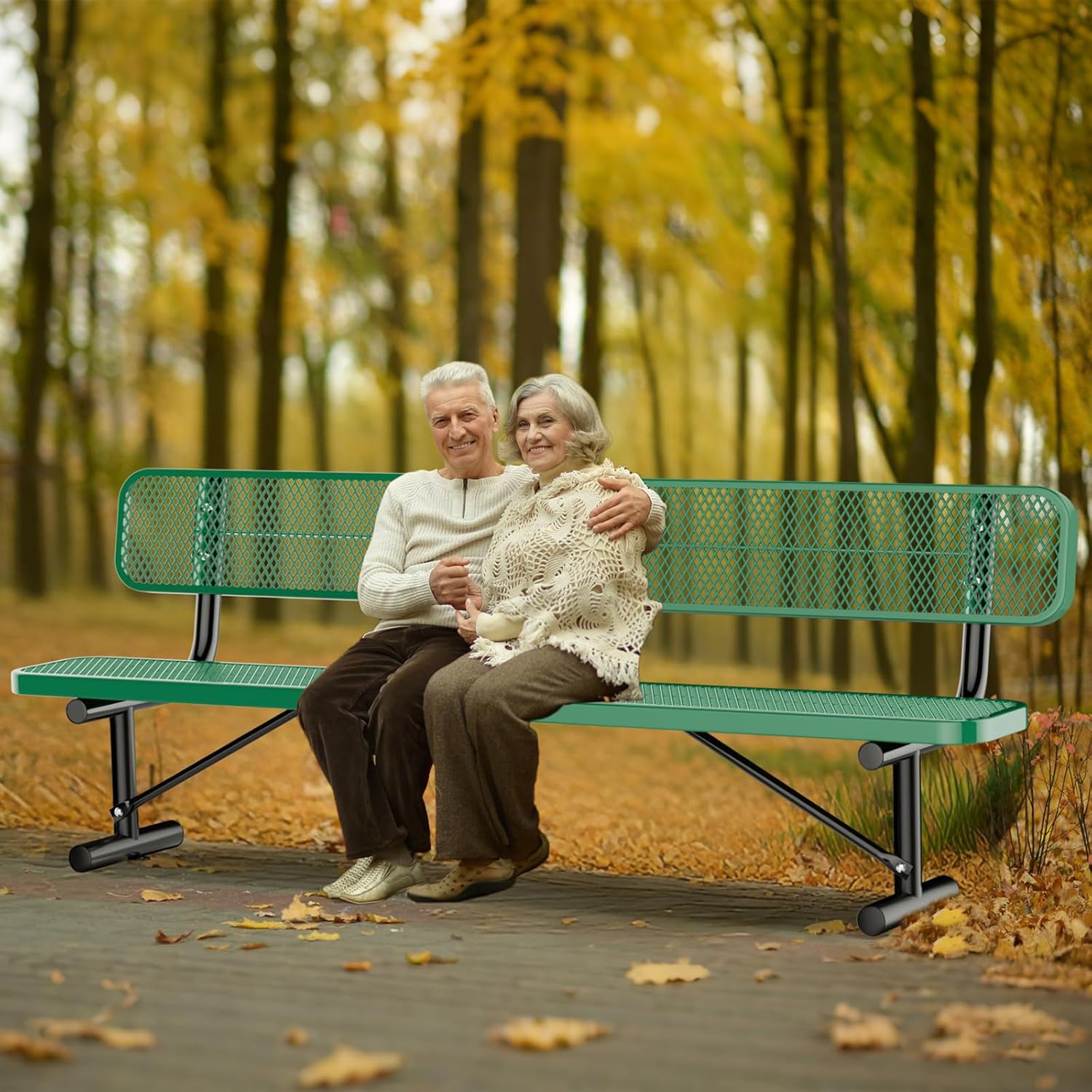 Outdoor Garden Bench, Cast Iron Metal Frame Patio Park Bench with Backrest, Portable Expanded Metal Black Bench, Commercial-Grade Outdoor Seating for Lawn, Patio, Park, Yard, Garden (Green, 8FT/96'')