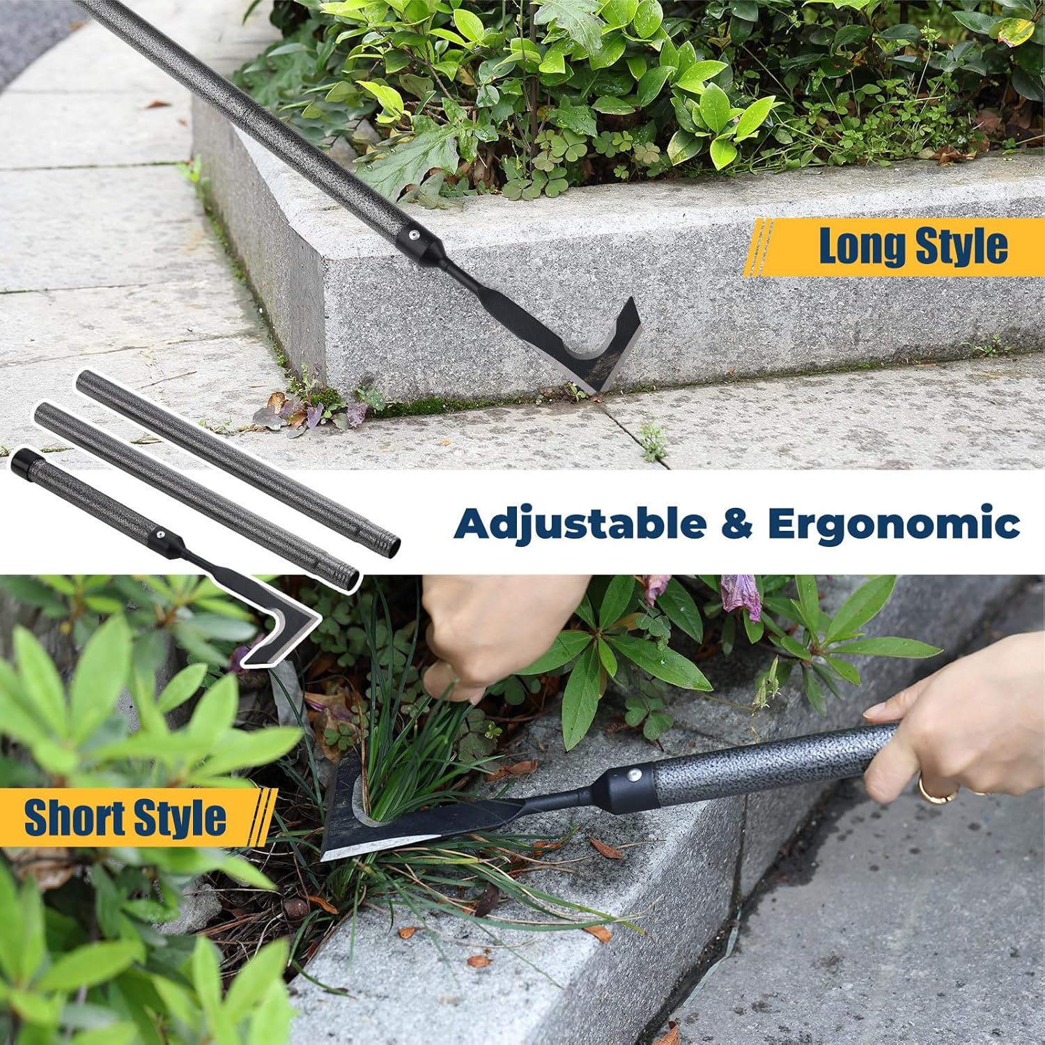 Weed Puller Tool | Adjustable Metal Handle (14.5"-43.5") (Upgraded Rustproof) | Multi-Functional Garden Hook for Pavement Gaps, Moss, Bushes | Commercial-Grade Yard Maintenance Equipment