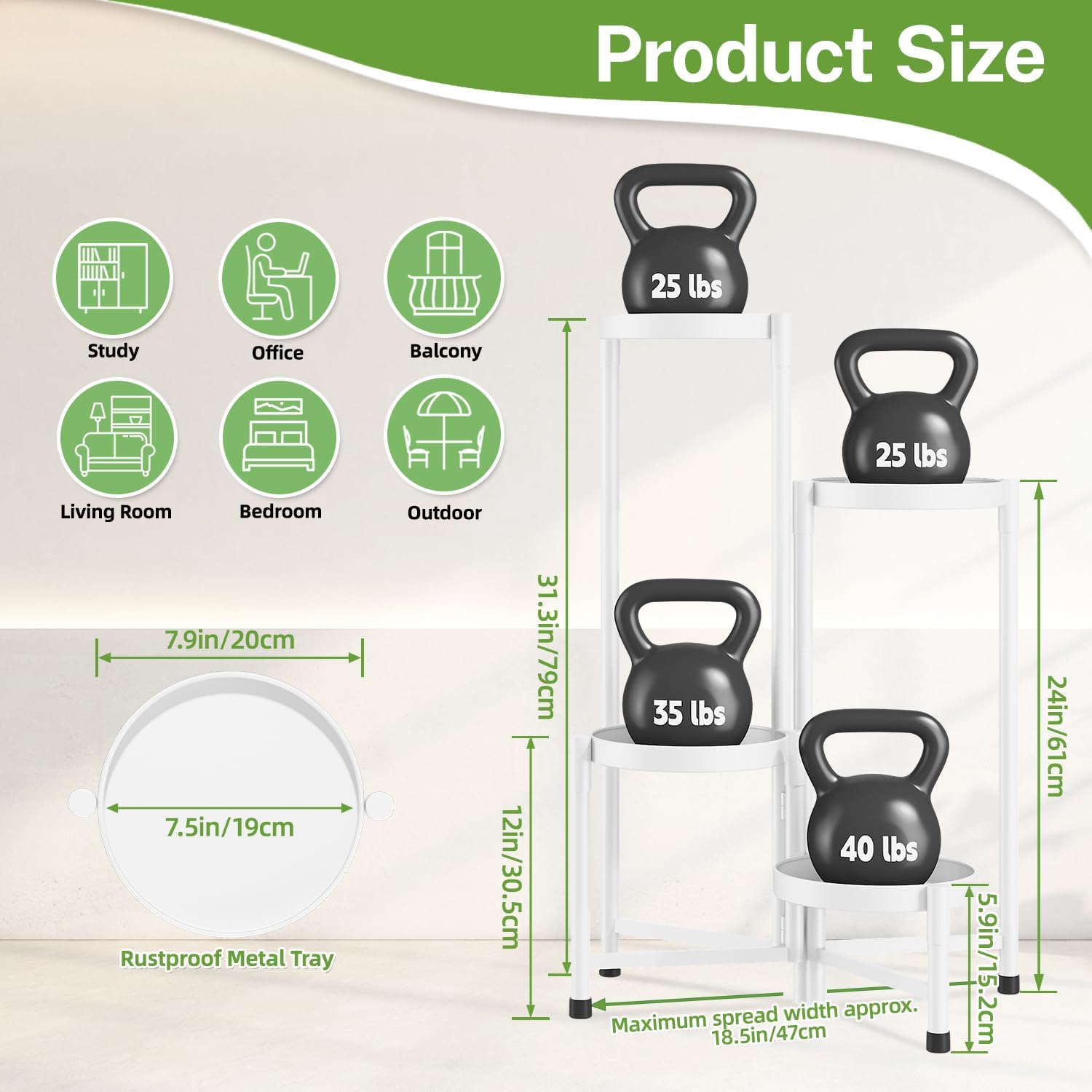 - 7.9-Inch Wide Trays with Rim: This tall plant stand features 7.9-inch round trays, suitable for pots up to 7.5 inches wide. Each tray is designed with raised edges that guard against spills and tipping, keeping your plants safe and steady