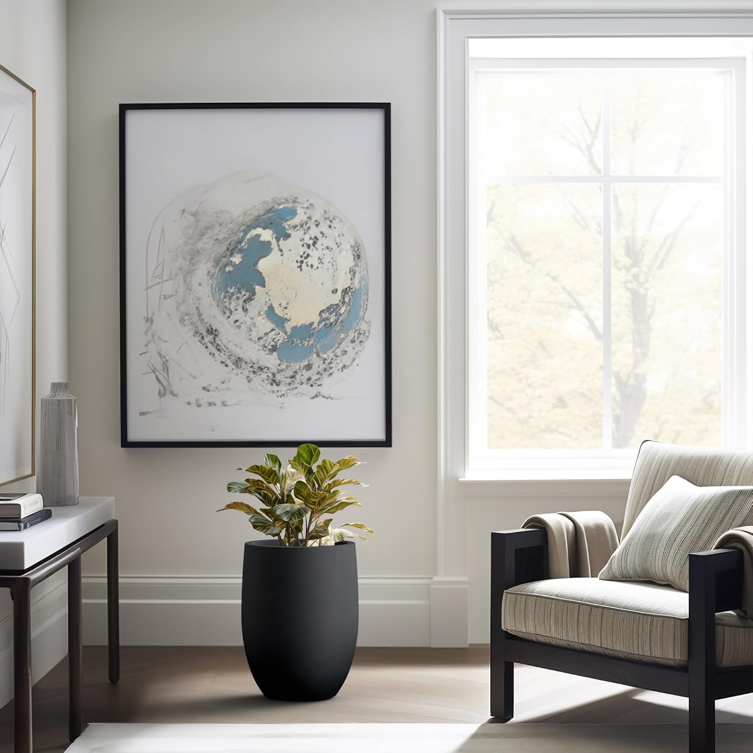 Kante 16.5 Inch Tall Concrete Planter, Large Indoor Outdoor Plant Pot with Drainage, Smooth Black Finish with Warm Brown Interior, Ideal for Porch, Home, Garden, Patio