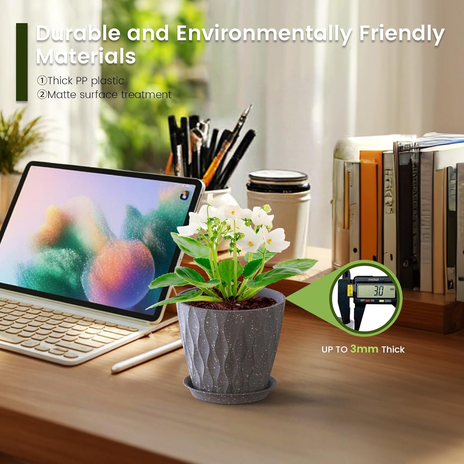 - 【Versatile for Indoor & Outdoor Use】These plastic pots for plants are perfect for enhancing windowsills, desktops, kitchens, bookshelves, gardens, and offices. Compatible with most plant stands and hanging systems, plant pots indoor offer endless possibilities for vertical gardening in any space
