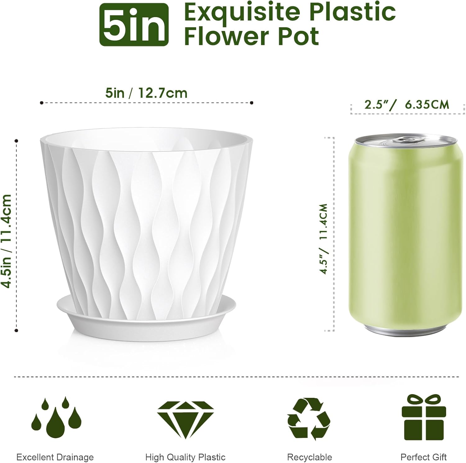 - 【Perfect Size for Versatile Planting】These 5 inch plant pots bulk are ideally sized for small to medium houseplants, including: Pothos, Snake Plant, Aloe Vera, ZZ Plant; African Violet, Miniature Roses; Mint, Basil; Succulents & Cacti. The decorative plant pots make a fantastic gift for friends and family who love growing plants